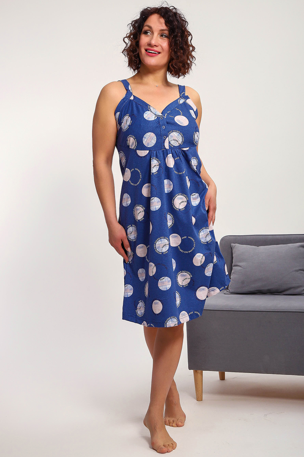 Сорочка женская без рукава на широких брителях . Данная модель выполнена из трикотажного полотна кулирка ( хлопок 100%). Полочка отрезная с кнопками. Горловина обработана широкой окантовкой. Отличная модель для сна и кормления.