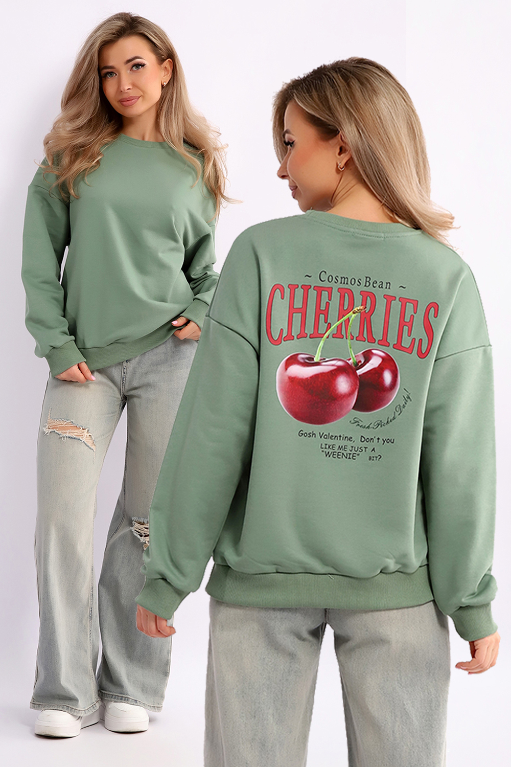 Молодёжный свитшот с ярким принтом на спинке, изготовлен из качественного футера пенье без начёса. Толстовка в свободном стиле OVERSAIZE, спущенная пройма, длинный рукав. Круглая горловина, манжеты рукава и низ джемпера обработаны эластичным кашкорсе. Стильный, приятный к телу джемпер необходимая вещь в гардеробе современной, активной модницы. Длина рукава в таблице измерений указана от начала горловины.