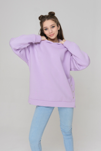 Толстовка женская, отличный вариант для прогулок и активного отдыха. Изделие выполнено из эластичного, теплого, трикотажного полотна футер 3-х нитка с начесом. По бокам расположены разрезы на кнопках. Они не только дополняют образ, но и несут функциональный характер. Низ изделия, как и манжеты выполнены из основного материала.