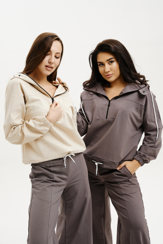 Женская толстовка с двумя молниями, капюшоном, карманами на рукавах. Свободного силуэта для тех, кто ценит комфорт.