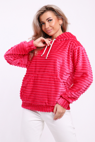 Толстовка женская прямого силуэта, трехцветная. Рукав цельнокроеный со швом. Воротник - стойка с двумя люверсами и декоративным шнурком. Верхняя часть полочки и рукава отделена от нижней светло-серой полосой, на которую настрочена декоративная тесьма. Карман Кенгуру. Низ изделия фигурный, по бокам разрезы.