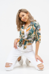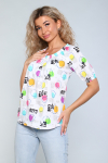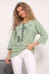 Туника полуприлегающего силуэта на пуговицах и рубашечным воротником. Рукава длиной 3/4. Карманы в боковых швах. Низ изделия полукруглый и слегка удлиненной спинкой.