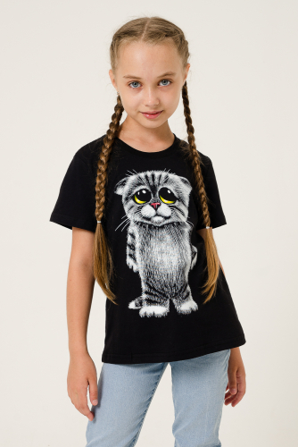 Туника женская приталенного силуэта с коротким рукавом, полочка оформлена асимметричными разрезными полосками, на спинке закладывается бантовая складка, в боковых швах имеются разрезы.