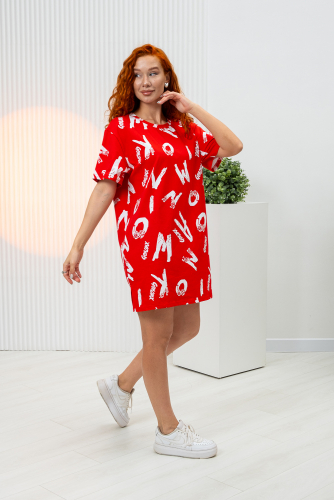 Туника прямого силуэта, с V-образной горловиной, с карманами в боковых швах. Рукав короткий, с манжетом из отделочной ткани. Низ полочки завершен деталью из отделочного полотна. В нижней части боковых швов обработаны разрезы. Горловина обработана обтачкой из основного полотна.