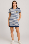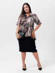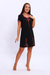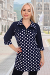 Туника женская, прямого силуэта. Рукав короткий цельнокроенный. Низ изделия регулируется двумя завязками, по боковым швам разрезы