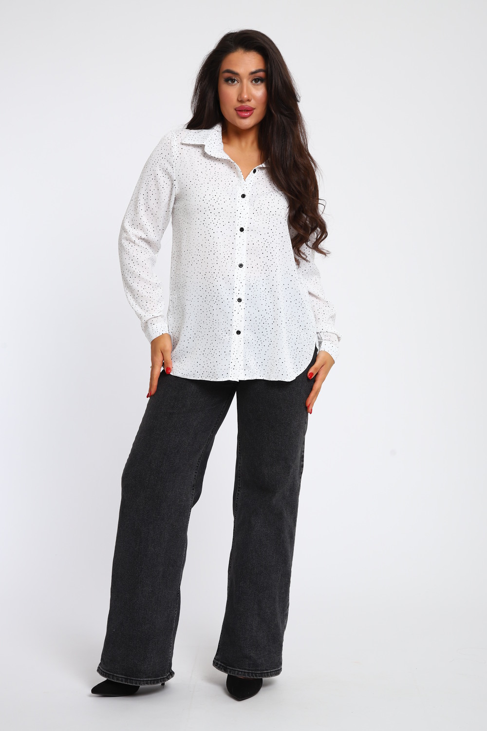 Эта женская рубашка с длинным рукавом станет отличной базой для множества образов. Сочетайте ее с классическими брюками для создания делового стиля, или надевайте с джинсами для более повседневного, но не менее стильного образа. Рисунок горох добавляет игривости и легкости, поэтому вы можете не бояться комбинировать рубашку с яркими аксессуарами.