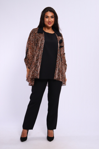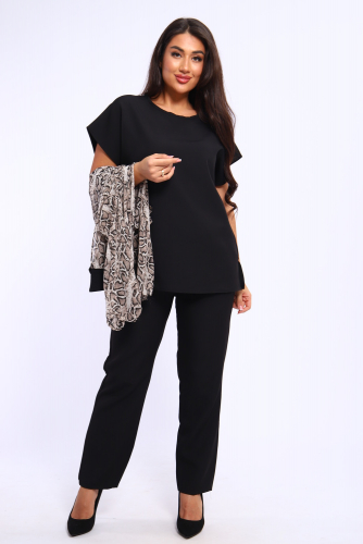Брючный костюм женский больших размеров доступен в двух цветах, что позволяет легко подобрать идеальный вариант для любой фигуры и предпочтений. Брюки, футболку и рубашку можно носить отдельно или в сочетании с другими элементами гардероба, создавая стильные комбинации.