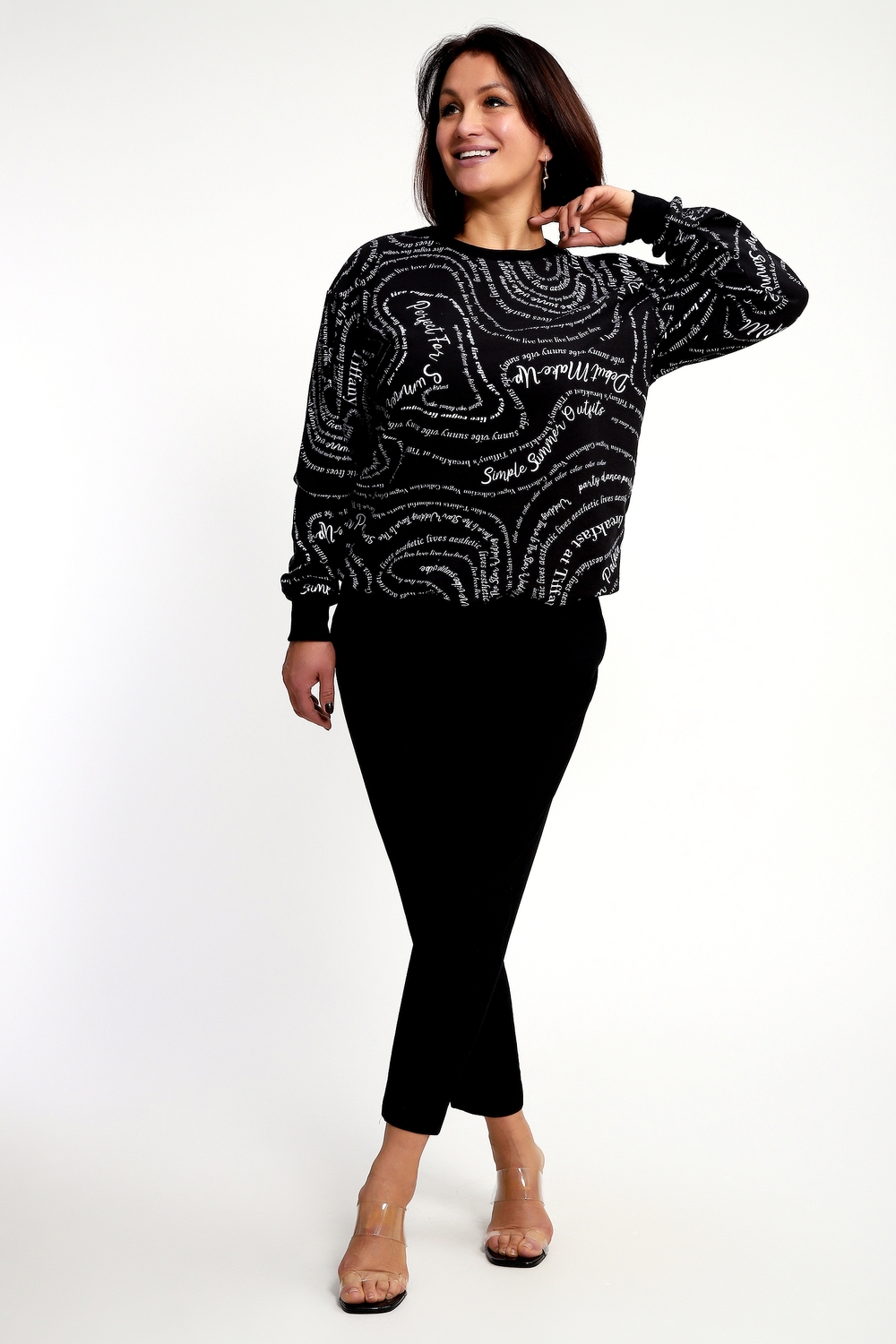 Данная модель выполнена из трикотажного полотна футер 2-х нитка (хлопок 100%). Горловина, манжеты на рукавах и по низу изделия обработаны эластичным трикотажным полотном кашкорсе. Отличная модель для офиса и повседневных дней. Цвет: черный; Материал: футер 2-х нитка; Состав: хлопок 100%.