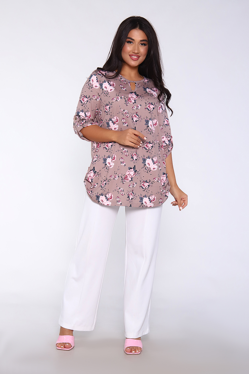 Женская туника-рубашка имеет округлый вырез с фигурной капелькой. Рукава 3/4 и низ подогнуты на плоскошовной машине, а так жен имеют декоративный элемент с пуговицей. Блуза женская подходит для беременных, для полных, для женщин больших размеров. Туника-рубашка подойдет для лета, весны, осени, зимы. Цвет: розовый; Материал: кулирка;кулирка; Состав: 100% хлопок.