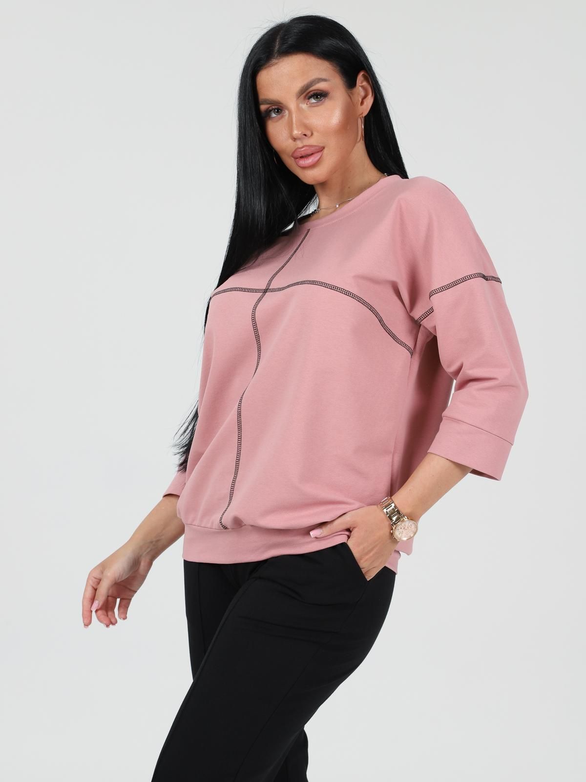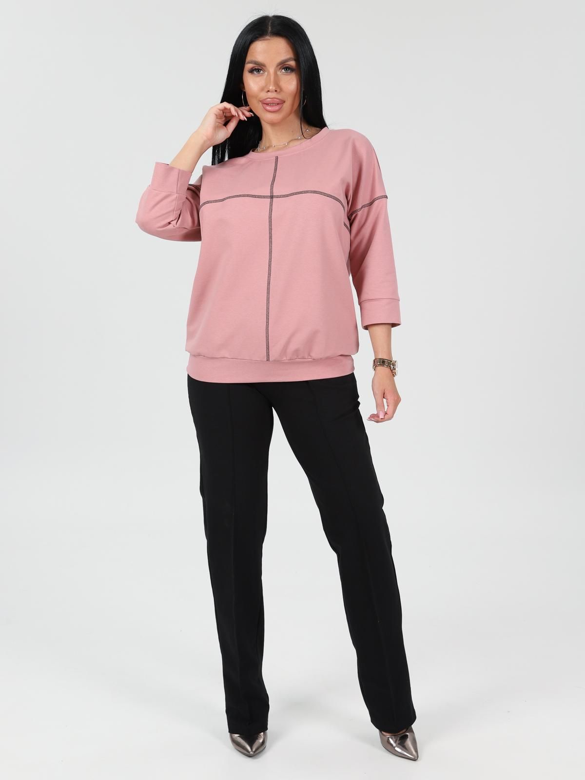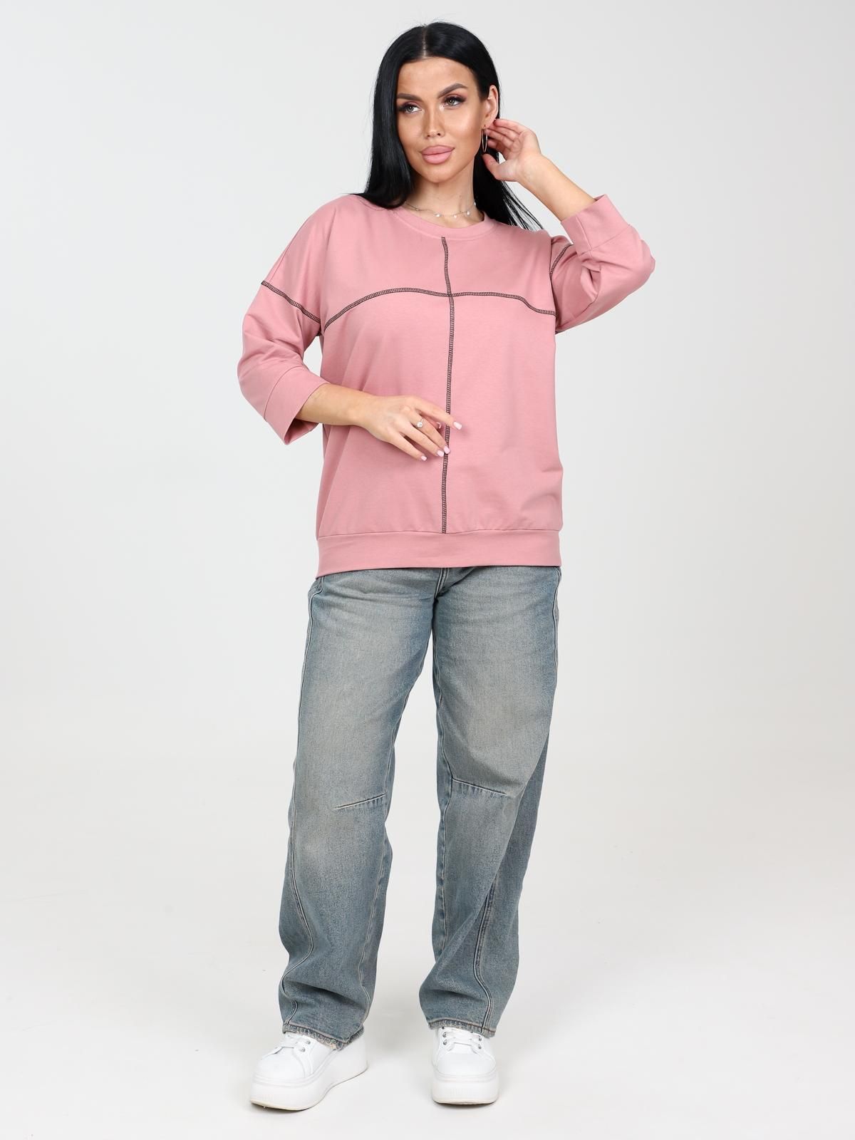 Удобный и стильный женский свитшот, сшит из мягкого трикотажного полотна высокого качества - футер двунитка. Свитшот не стесняет движений, отлично сочетается с брюками и джинсами. Максимально удобен при носке и выгодно сидит на фигуре.