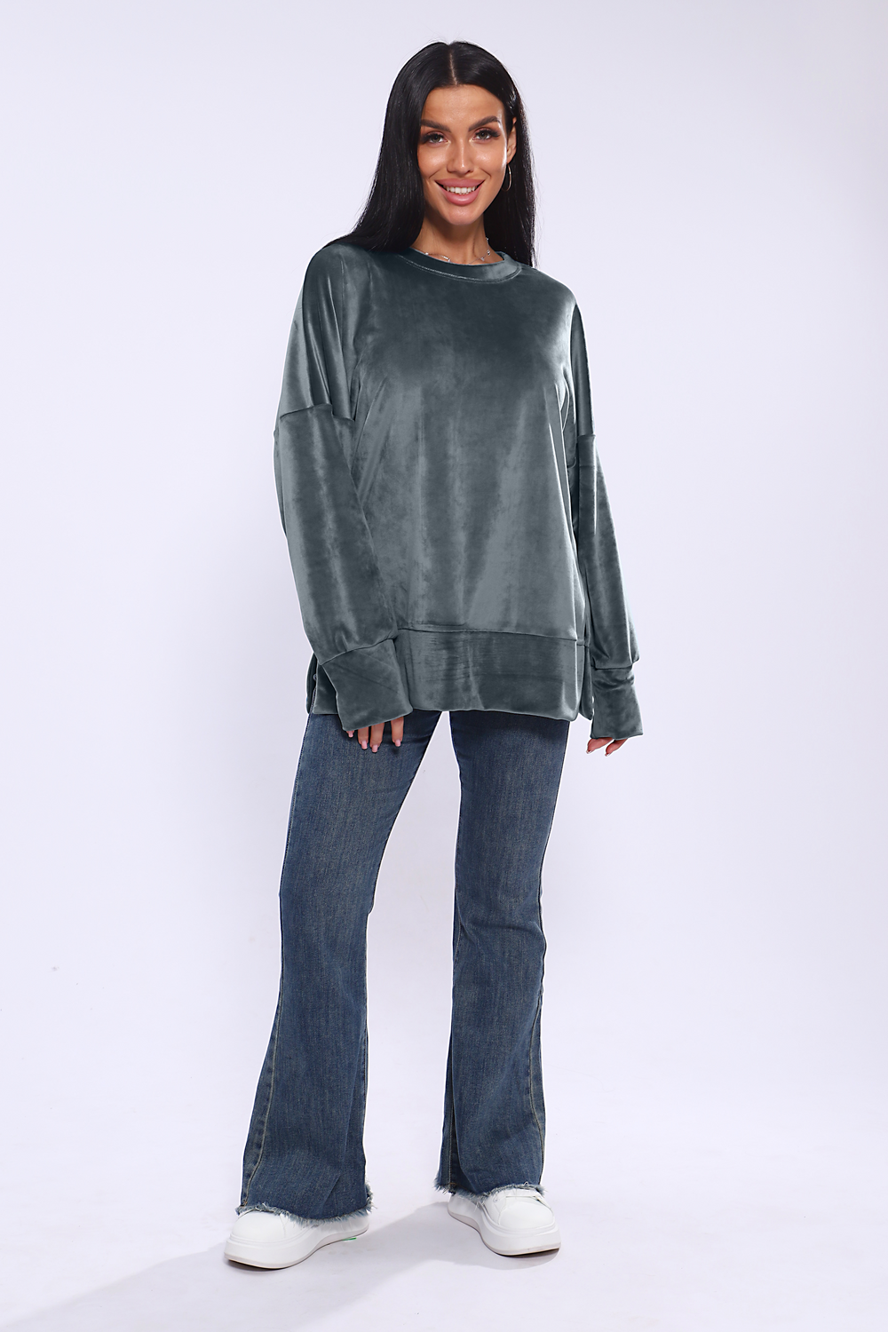 Женское худи свободного кроя со спущенным рукавом и разрезами по бокам. Модель выполнена из премиального велюра.