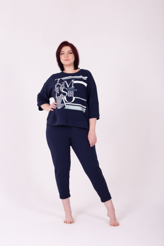 Костюм женский с брюками на резинке и свободной кофтой с рукавами 3/4. Модель выполнена из качественного футера 2-х нитки.