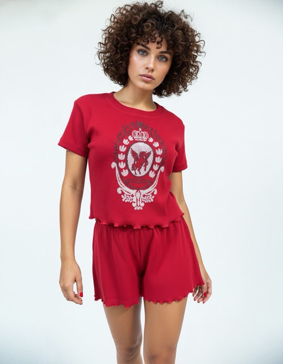 Пижама от бренда NINEL представляет собой комфортное и стильное решение для повседневного ношения дома. Созданная из высококачественной рибаны с добавлением 8% лайкры, эта пижама обеспечивает идеальную воздухопроницаемость и дышащие свойства, делая её идеальной для использования в любое время года. С футболкой и шортами, это изделие подходит как для сна, так и для ленивых выходных дней, обеспечивая при этом элегантный и современный внешний вид.