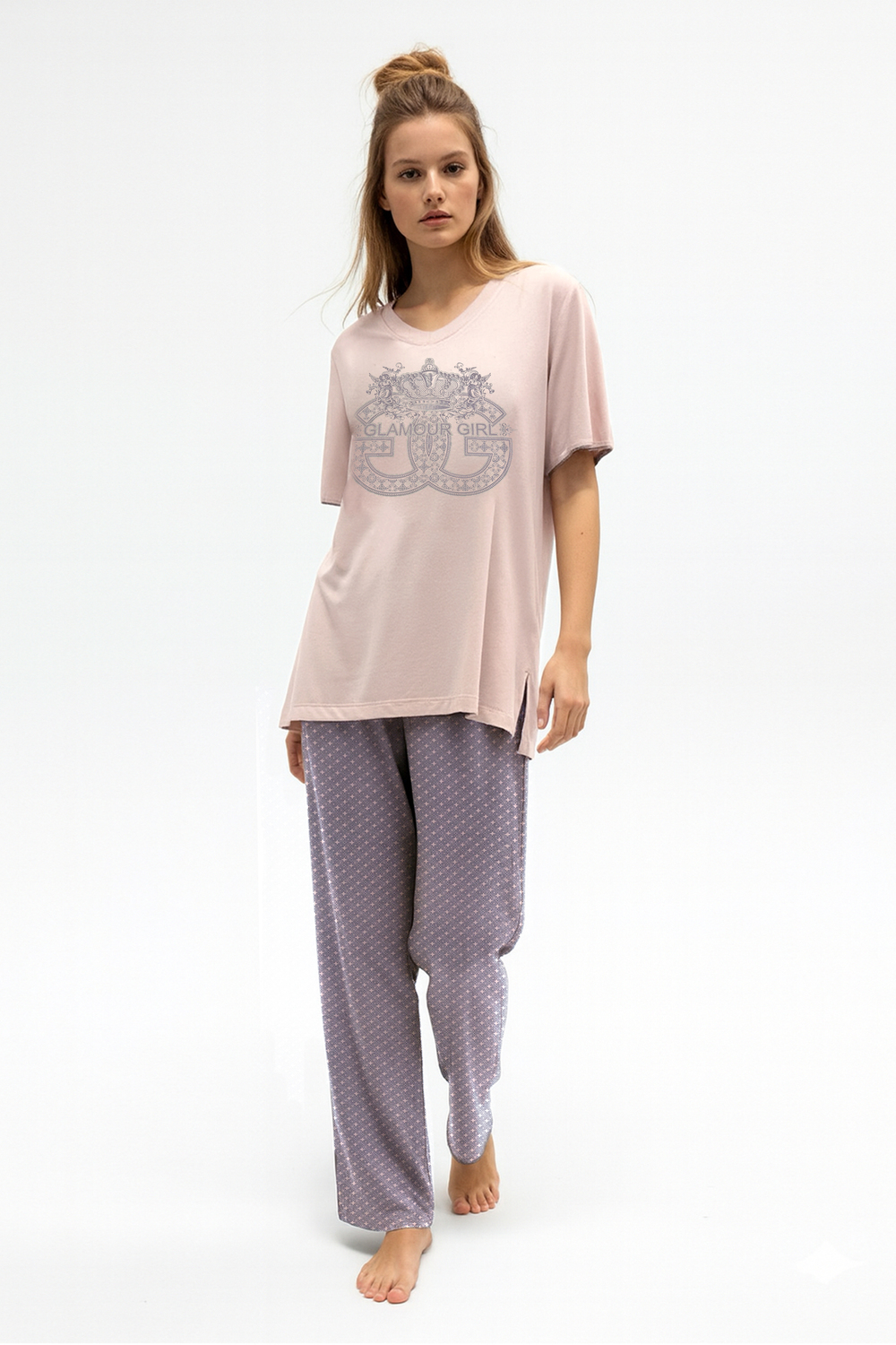 Модель: Женский домашний костюм с брюками и футболкой 410