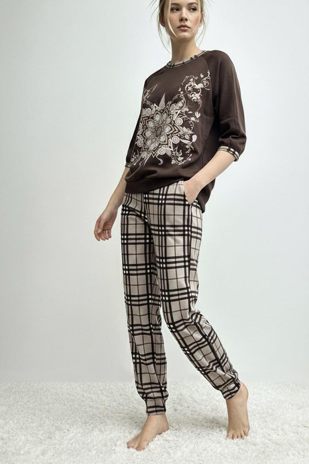 Модель: Женский домашний костюм с брюками и кофтой 22 В