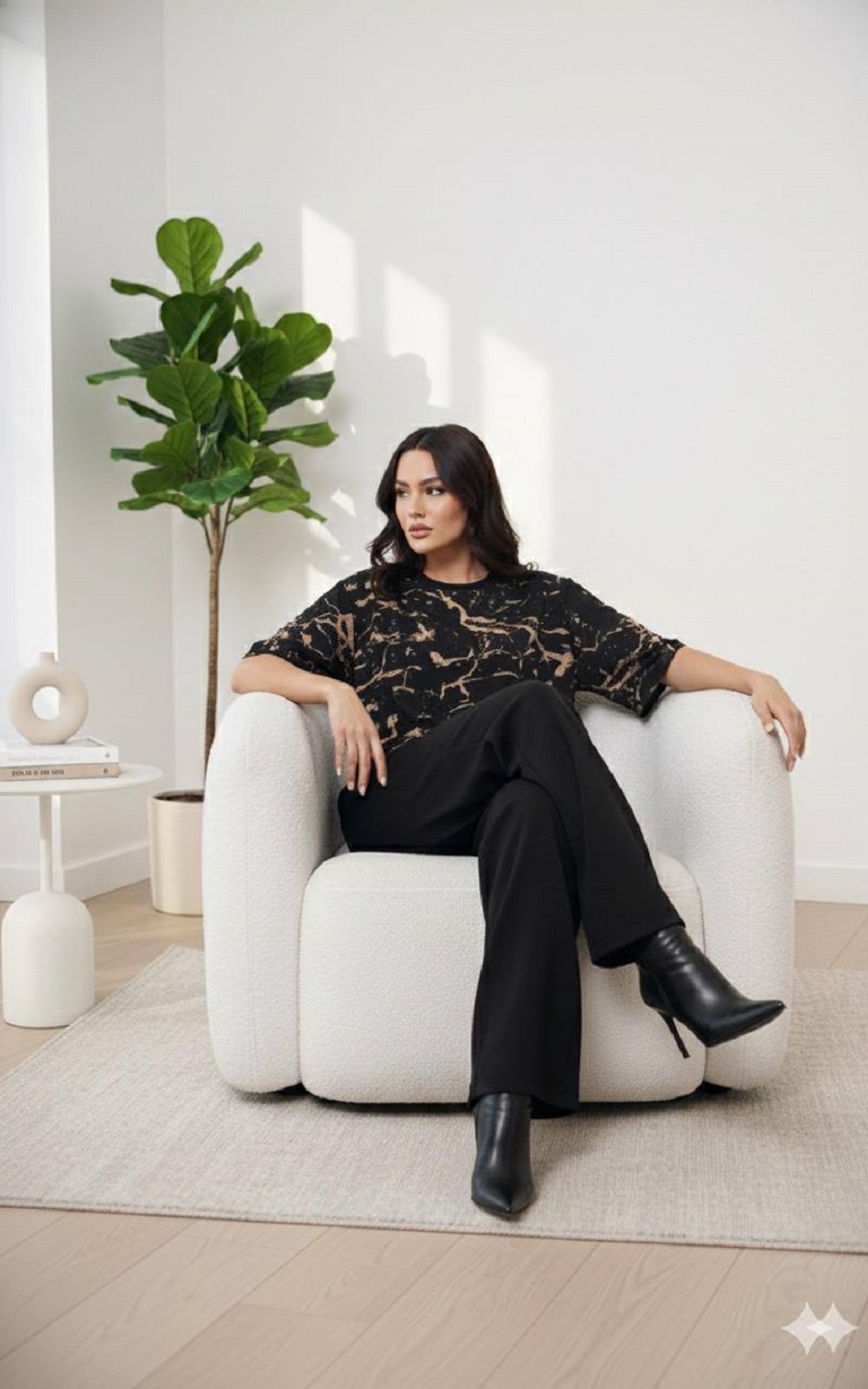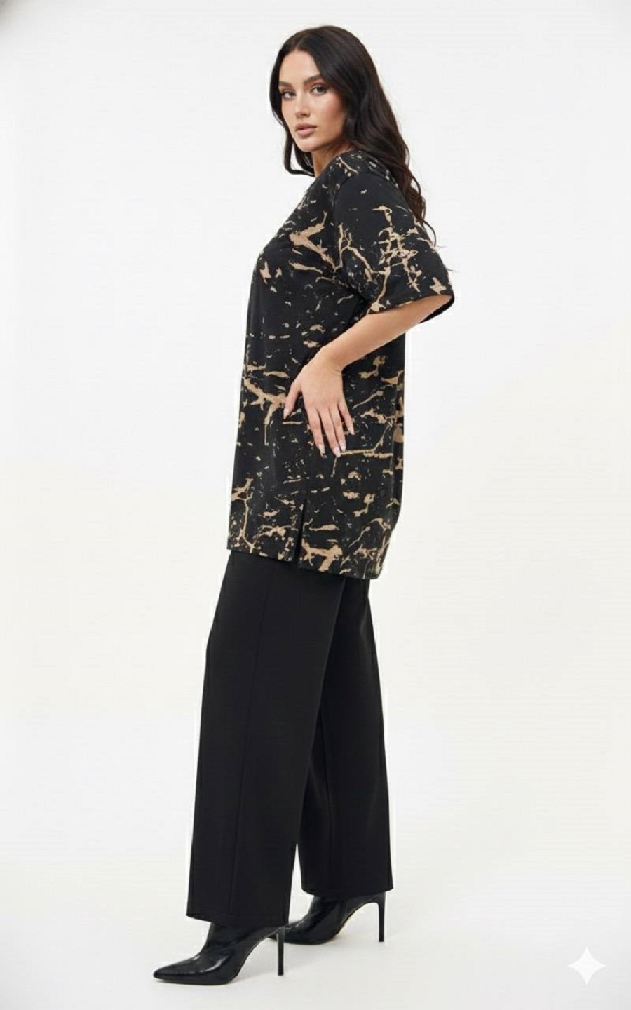 Представляем вам женский повседневный костюм от бренда NINEL воплощение элегантности и непревзойденного комфорта. Этот комплект, состоящий из свободных брюк и футболки, создан для современной девушки, ценящей качество, стиль и универсальность. Цвет: черный; Материал: вискоза;вискоза; Состав: 95%вискоза 5%эластан.