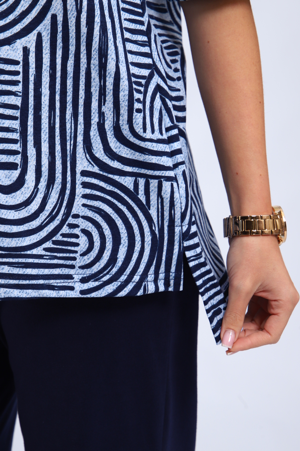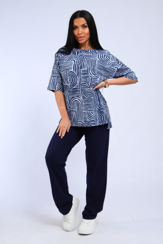 Костюм женский футболка и брюки. Футболка полуприлегающего силуэта. Рукав короткий на спущенном плече. Разрезы в боковых швах. Брюки прямого кроя. Цвет: голубой; Материал: кулирка;кулирка; Состав: 100% хлопок.