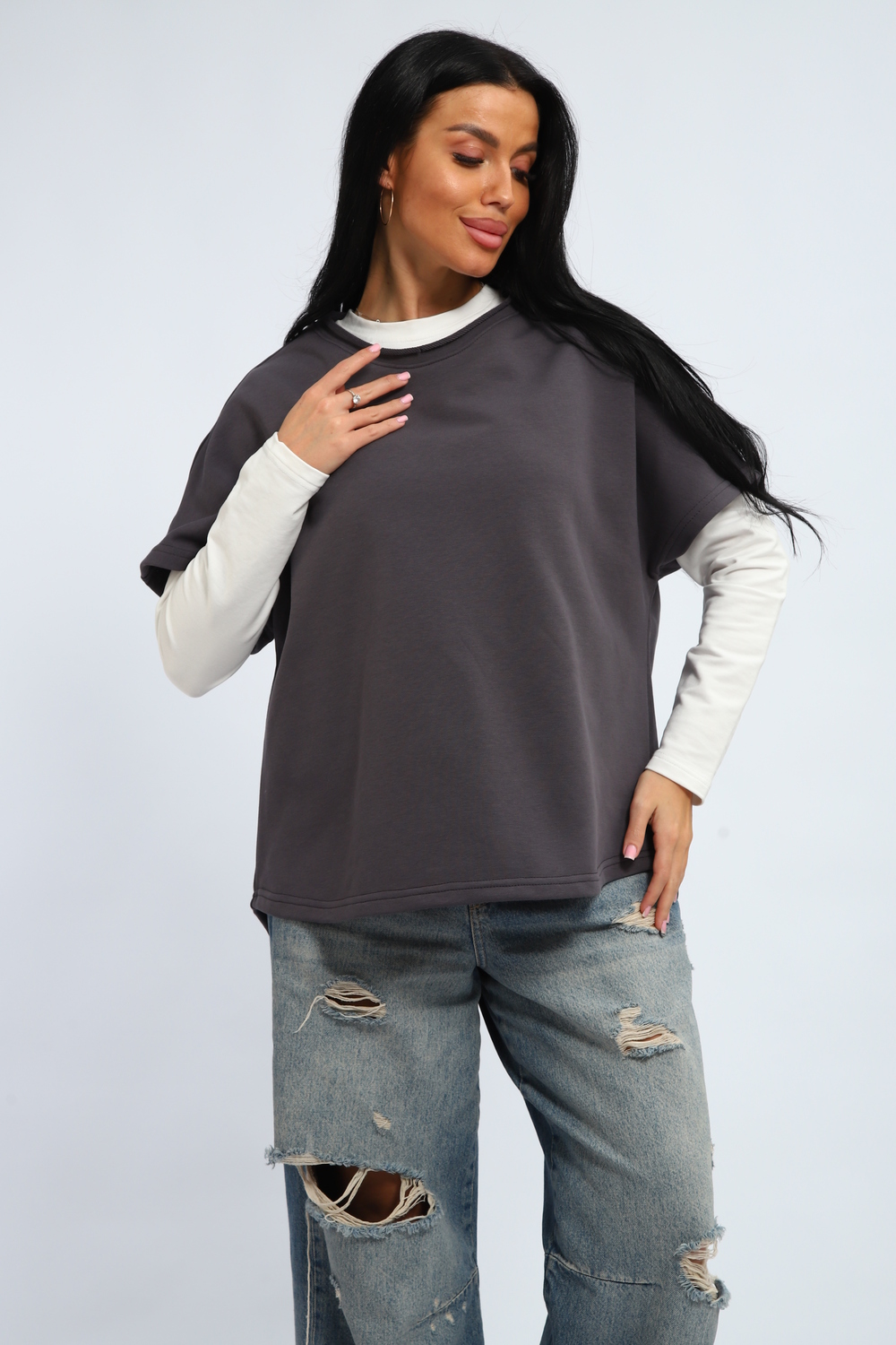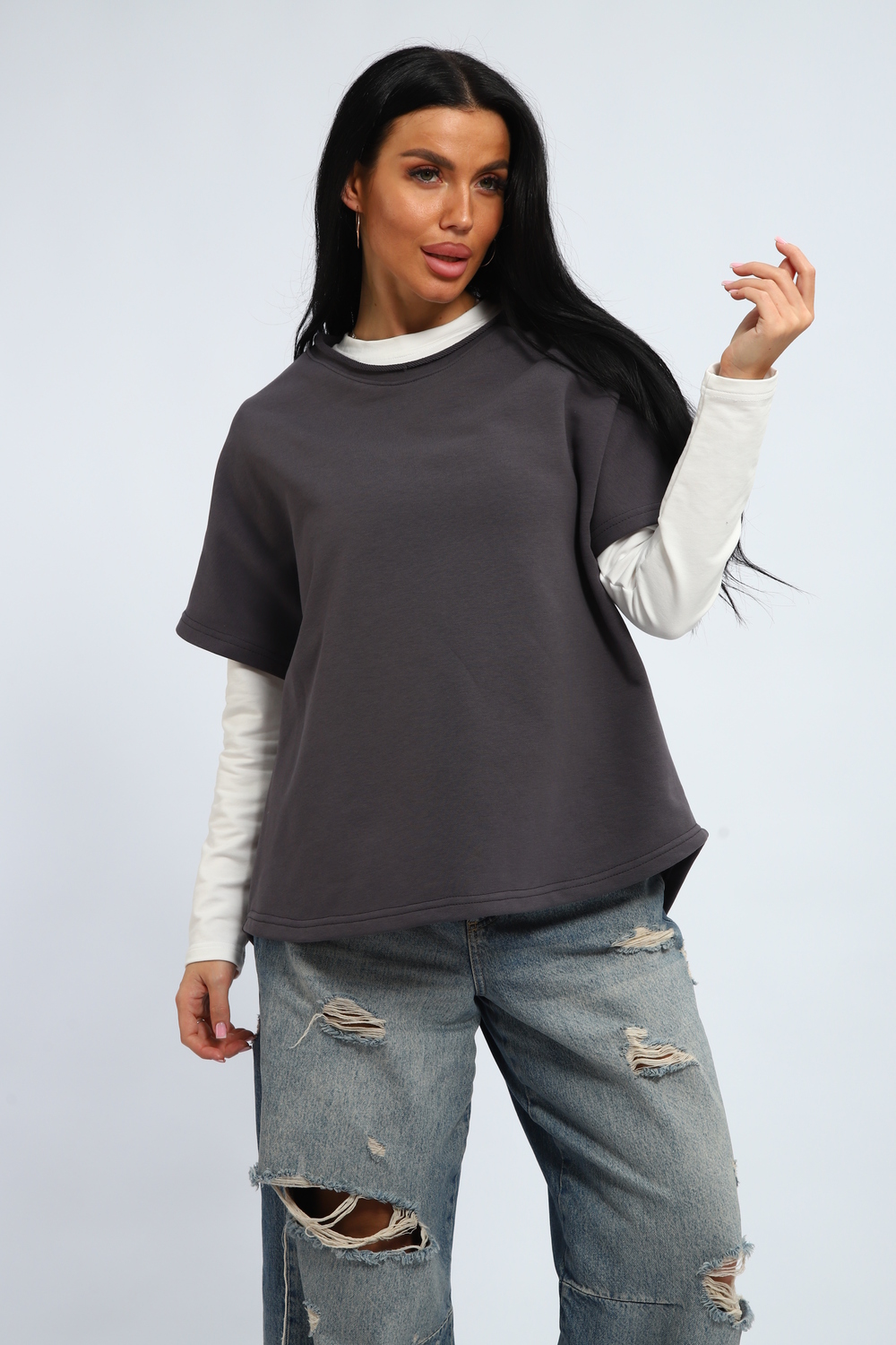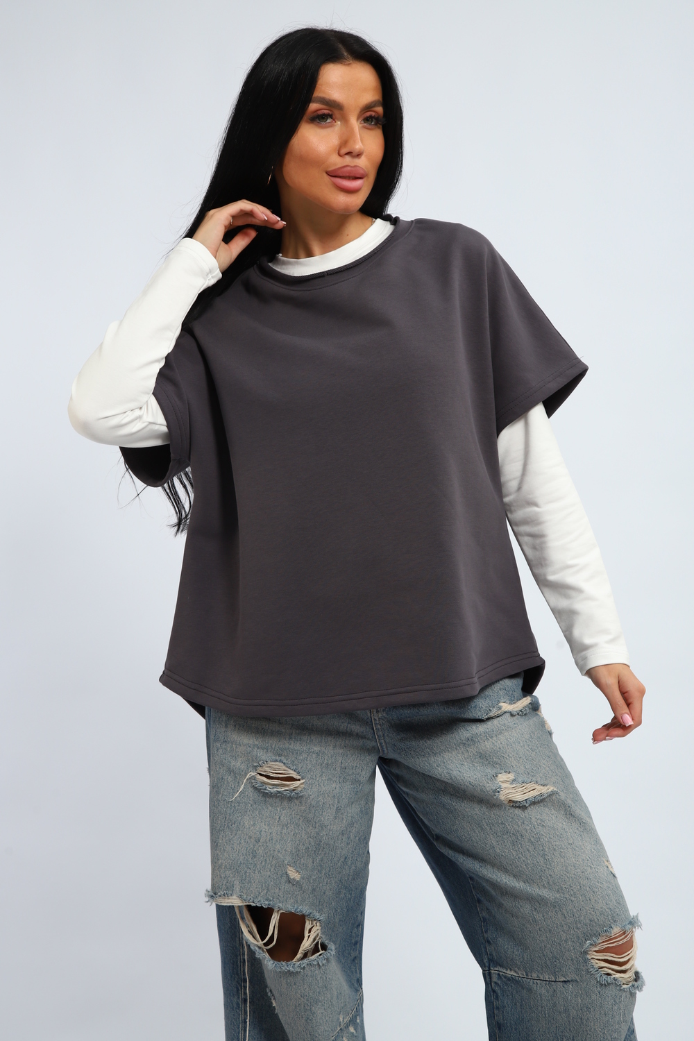 Эта женская кофта жилетка идеальное решение для тех, кто ценит удобство и практичность. Благодаря свободному крою оверсайз, модель обеспечивает свободу движений и комфорт в течение всего дня. Спущенные плечи и округлый вырез горловины придают образу лёгкость и женственность. Удлинённая длина позволяет носить её как футболку или пончо, что открывает широкие возможности для создания разных луков Цвет: серый; Материал: футер 3-х нитка;футер 3-х нитка; Состав: 70% хлопок, 30% полиэстер.