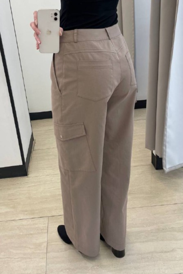 Брюки-карго прямого силуэта из эластичного денима. На задней части брюк отрезная кокетка и накладные карманы, на передней - карманы с подкройным бочком. По боковым швам выполнены накладные карманы с клапанами. Притачной пояс со шлёвками. Застёжка на молнию-гульфик и кнопку.