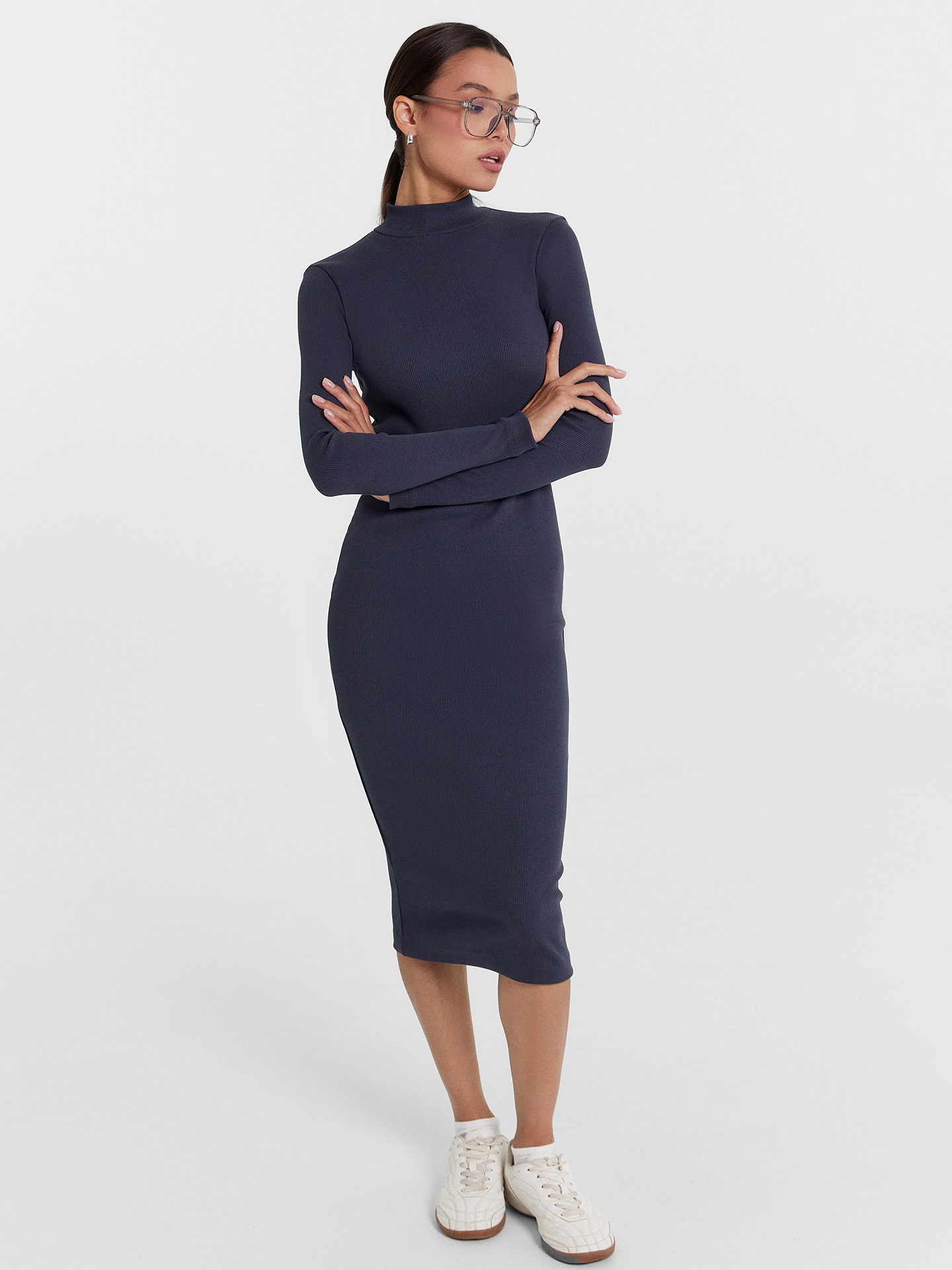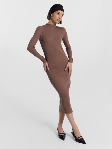 Однотонное платье женское с длинными рукавами, прилегающего силуэта из высококачественного хлопка в рубчик. Вырез круглый, с воротником-стойкой. Рукава длинные, облегающие. Длина модели чуть ниже колена. Отличное базовое платье, которое станет основой вашего стильного образа. Такое платье точно не будет ждать своего часа на полке в шкафу. В осенне-зимний период так хочется надеть что-то максимально комфортное и уютное - эта модель именно такой вариант. Облегающее платье не стесняет движений, очень комфортное в носке. Идеально подойдет для прогулок, встреч с друзьями, свидания и похода в кино. Рекомендуем!