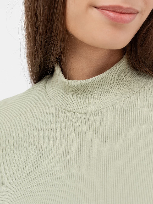 Однотонный джемпер в рубчик пыльно-зеленого цвета с укороченными рукавами