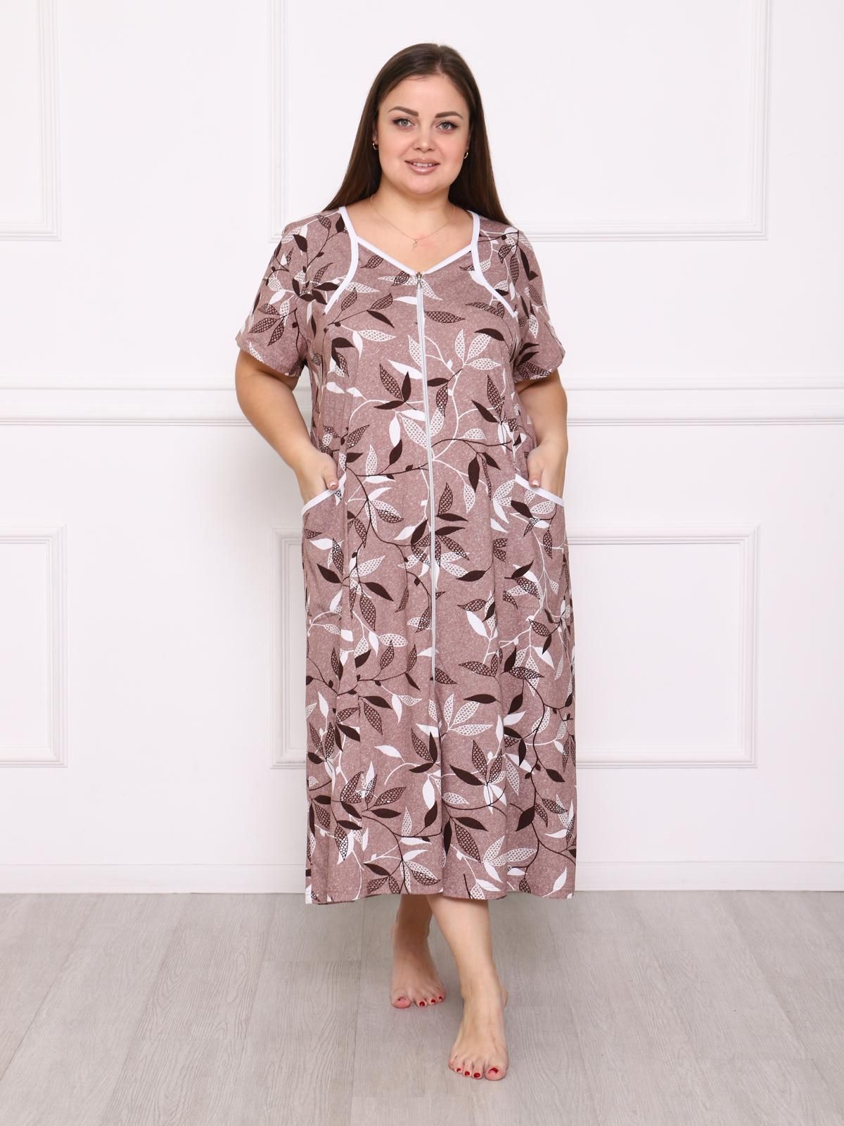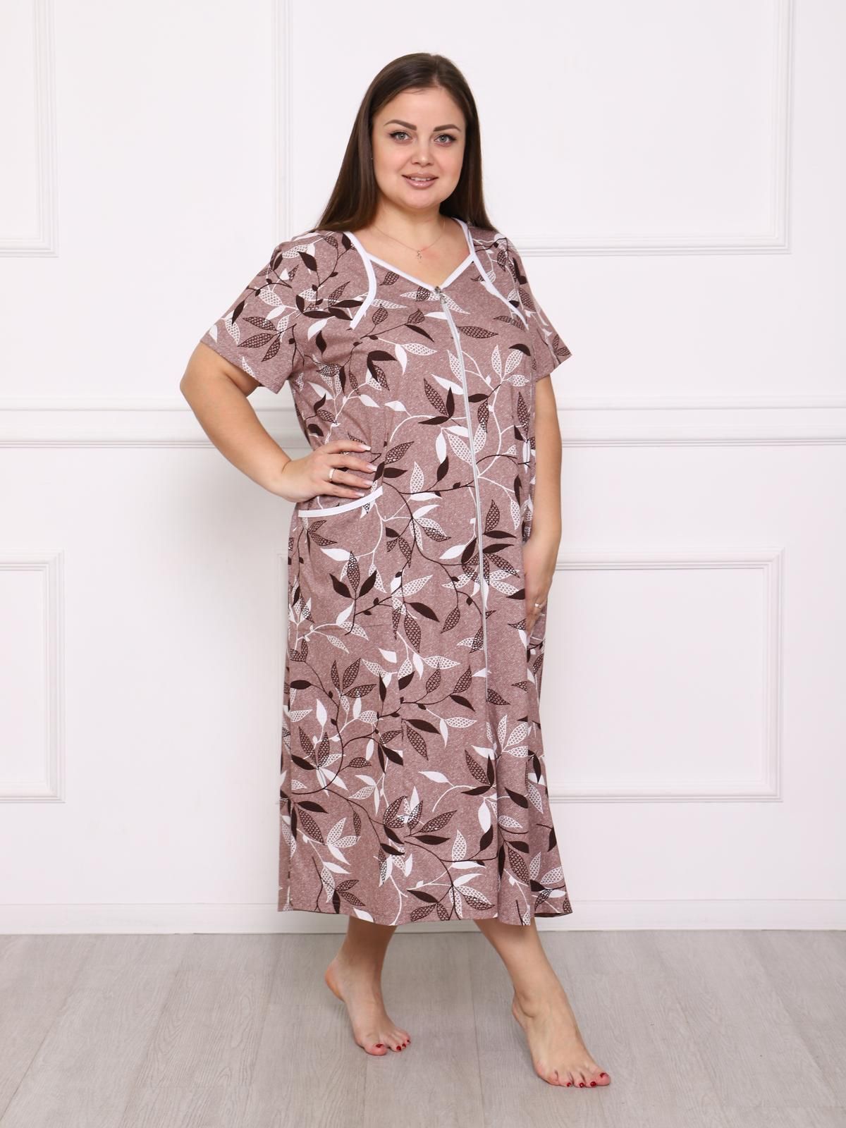 Легкий и удобный домашний халат на молинии. Модель с короткими рукавами и накладными карманами. Такой халат обязательно порадует качественным и приятным к телу материалом, комфортным фасоном и красивыми расцветками.