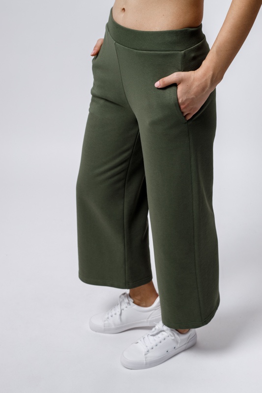 Кюлоты длиной семь восьмых. Карманы в боковых швах. Пояс из кашкорсе. Декор вышивка. Состав: ХЛОПОК 80%; ПОЛИЭСТЕР 20%