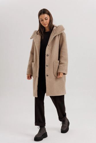 Элегантное, женственное и эффектное. Это пальто было популярно и в прошлые сезоны, но в коллекции 24-25 г. занимает одно из первых мест. Современный, свободный силуэт с заниженной линией плеча, втачной рукав, расширенный в области оката, центральная застёжка на тесьму молнию и цельнокроеную с полочкой планку, расстёгивающуюся на отдельные кнопки, воротник-капюшон с отделкой мехом.