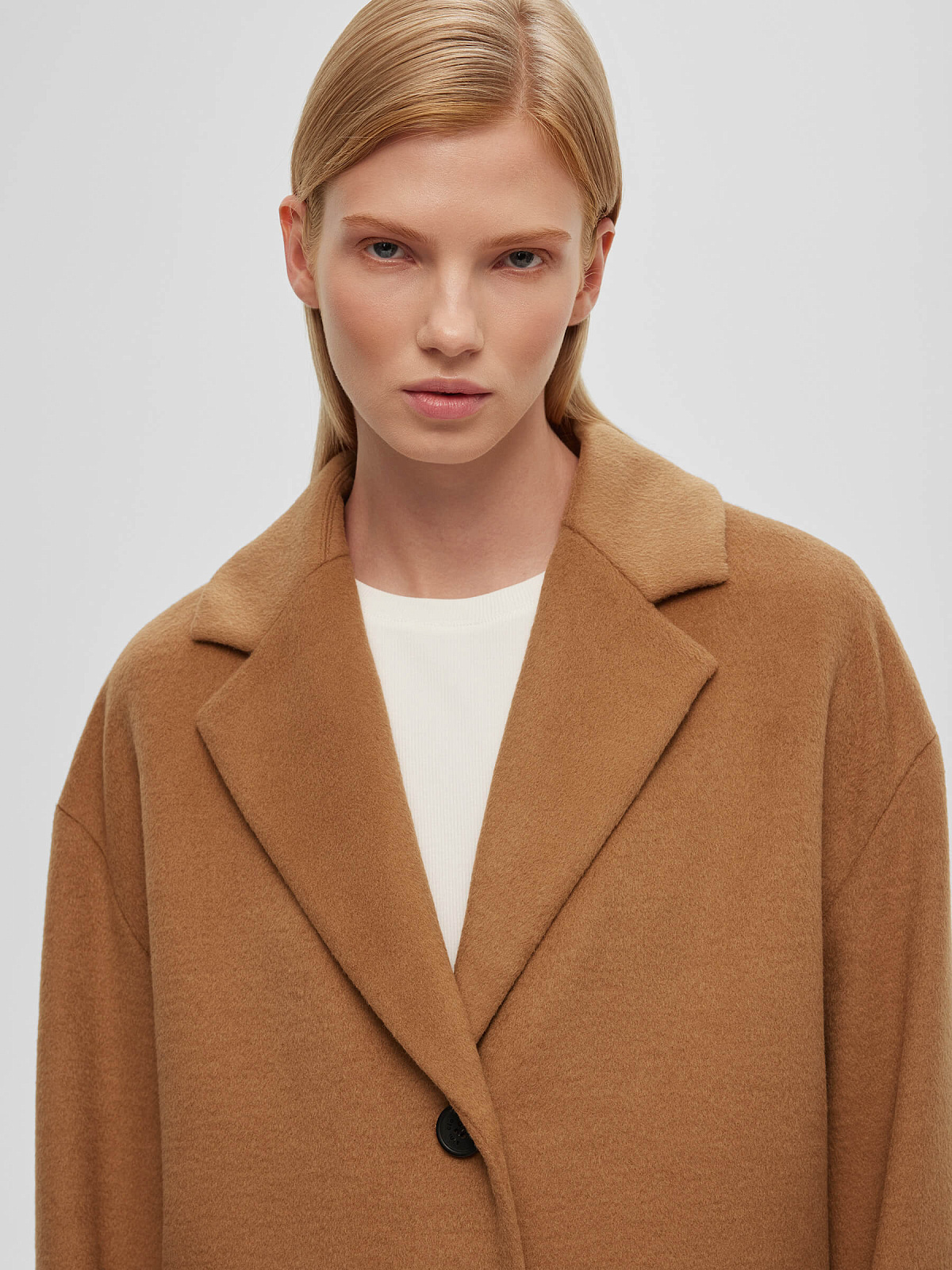 Пальто оверсайз однобортное, кэмел
