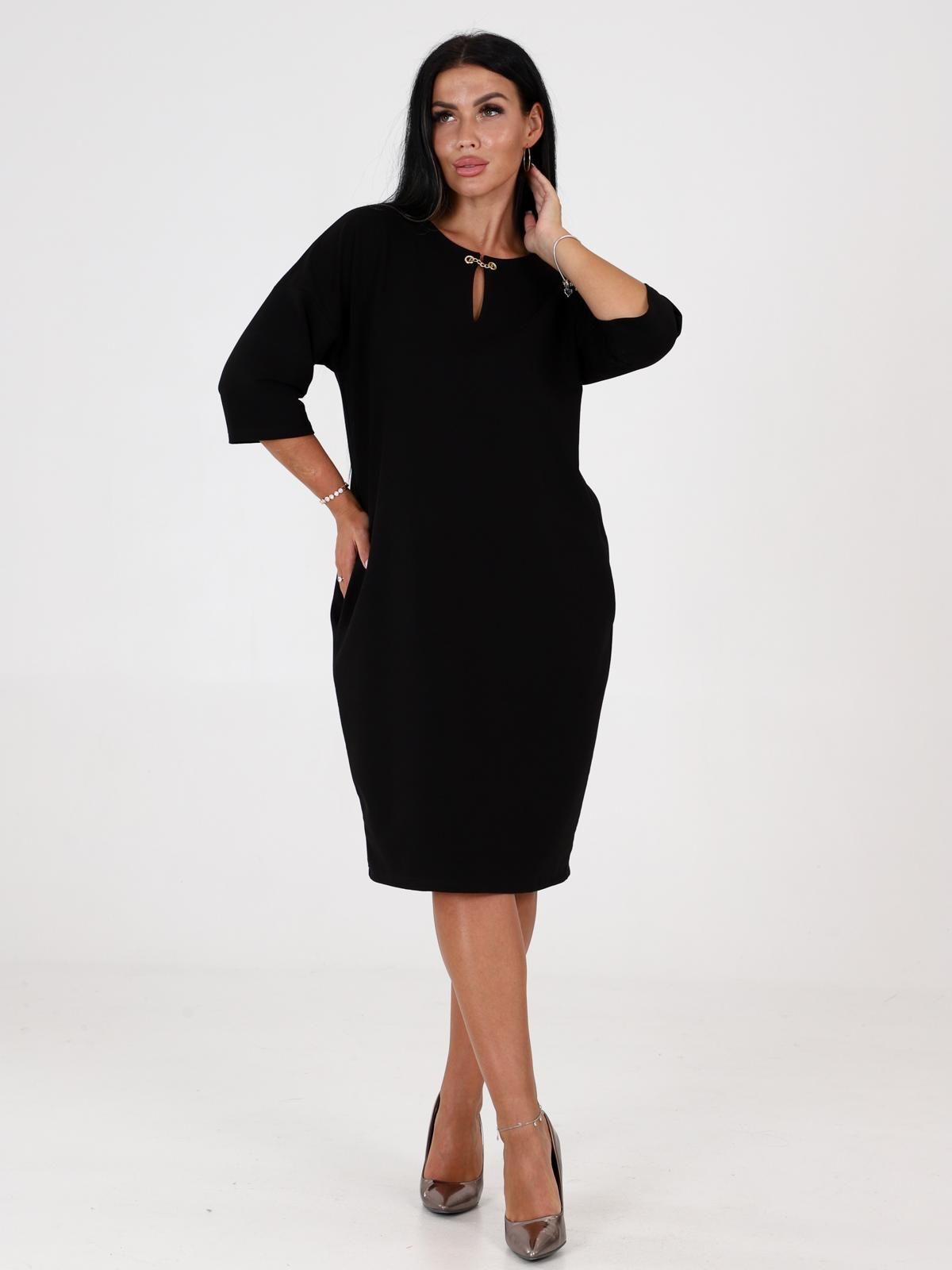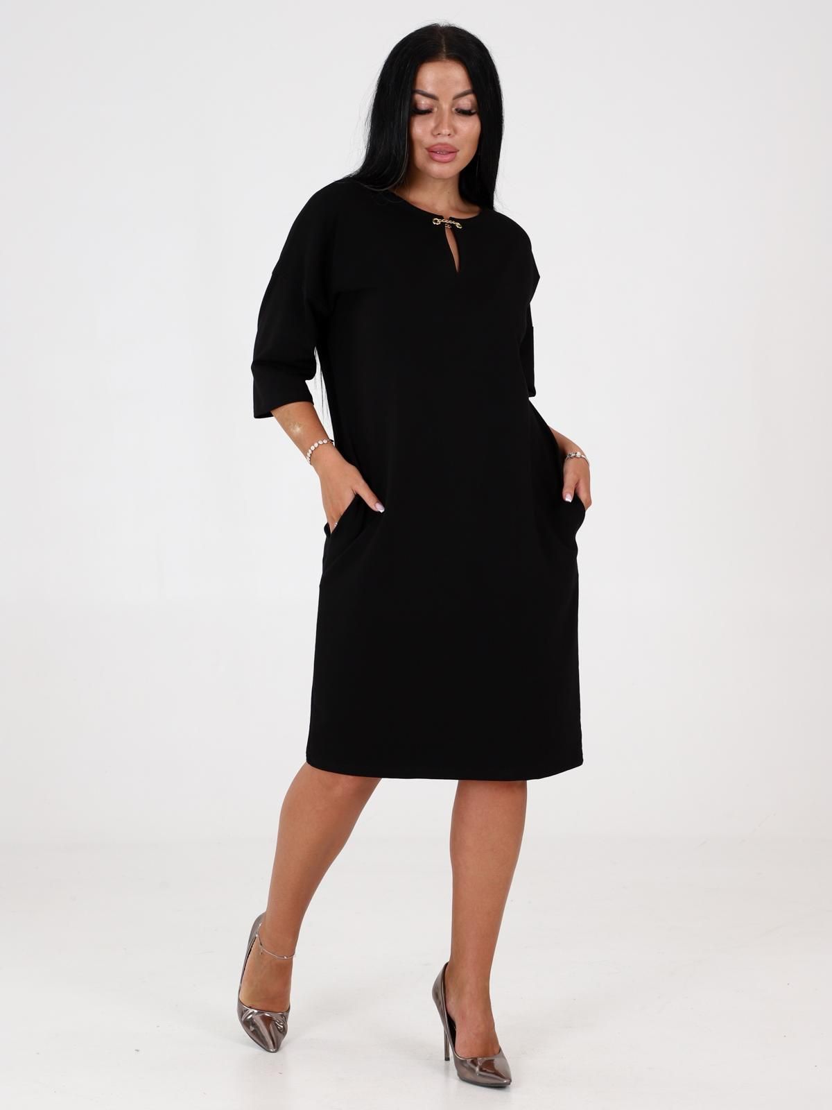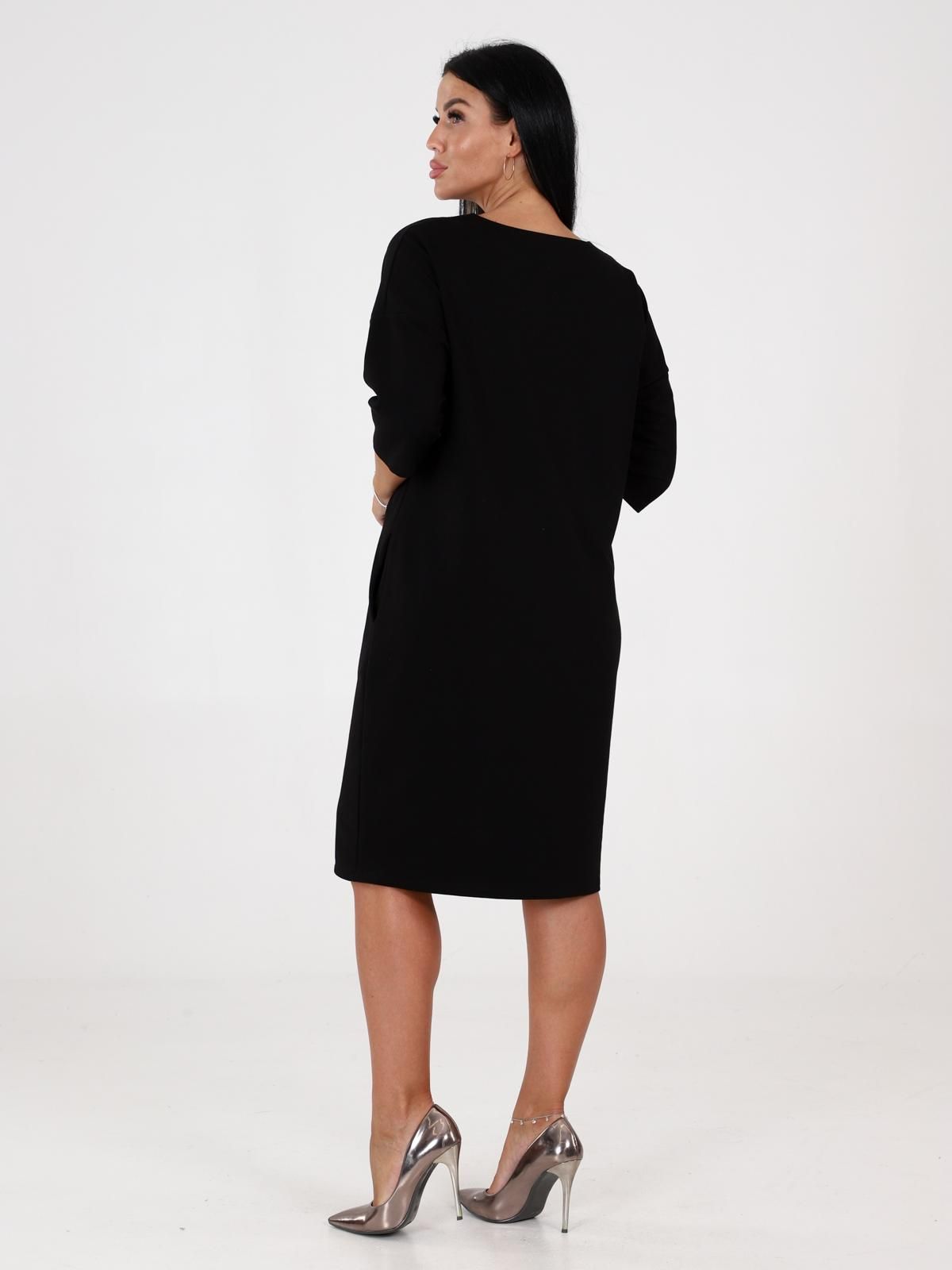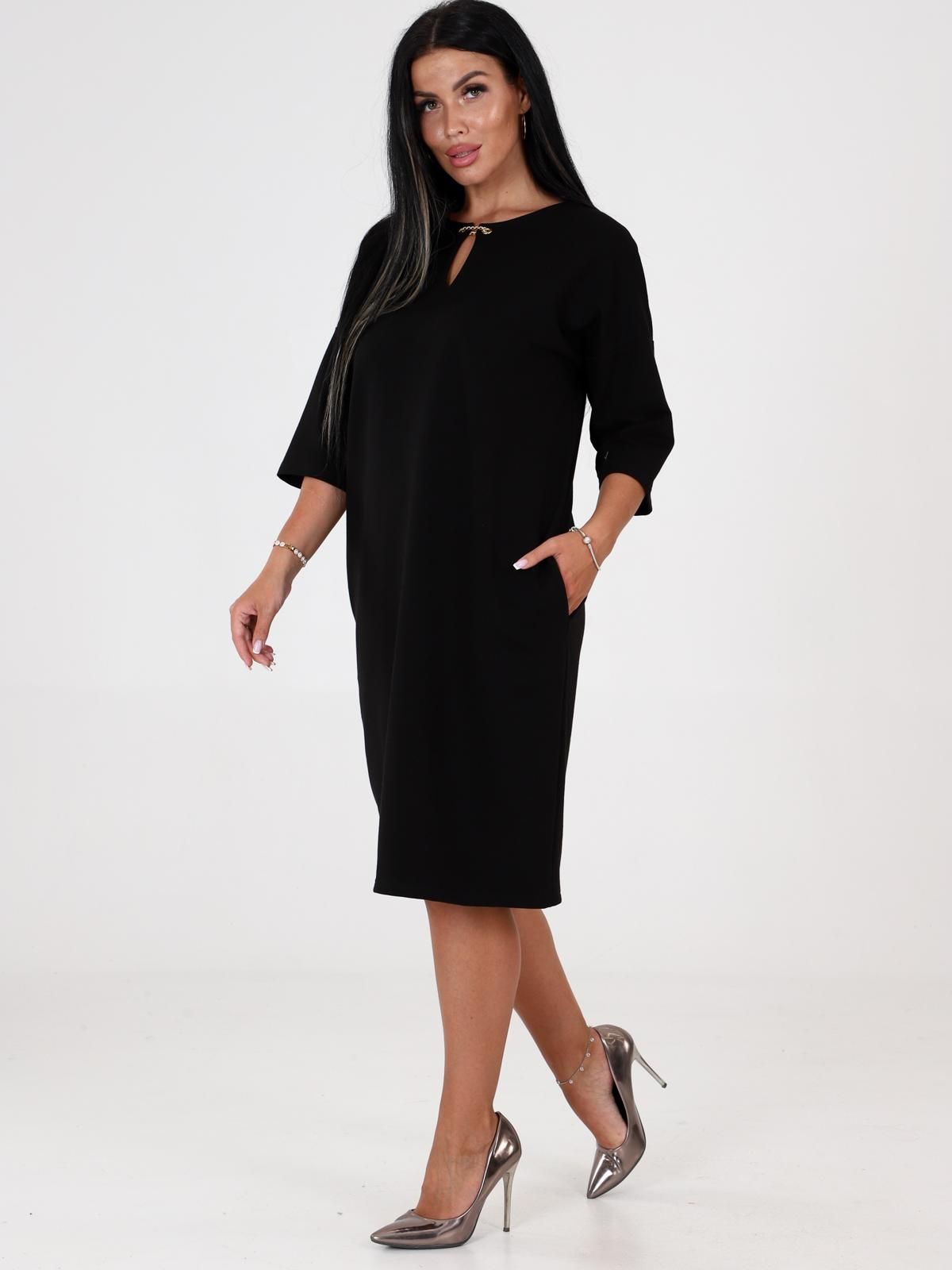 Платье подойдет для торжественного случая, а так же для повседневной носки. Модель прямого силуэта, длиной до колен, с карманами в боковых швах, рукав ¾. Модная, универсальная модель походит всем - стройным женщинам и дамам с формами.