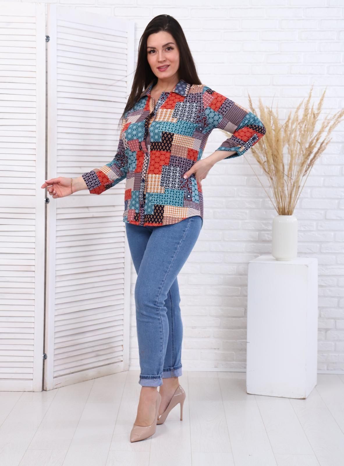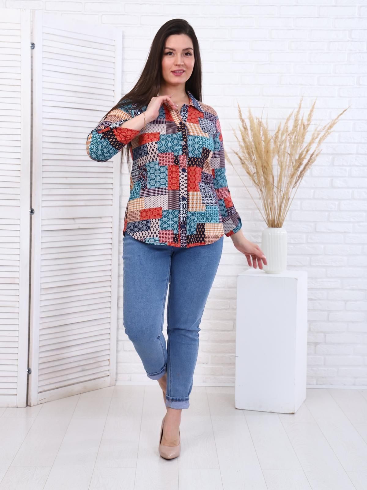 Пэчворк - рубашка бирюза