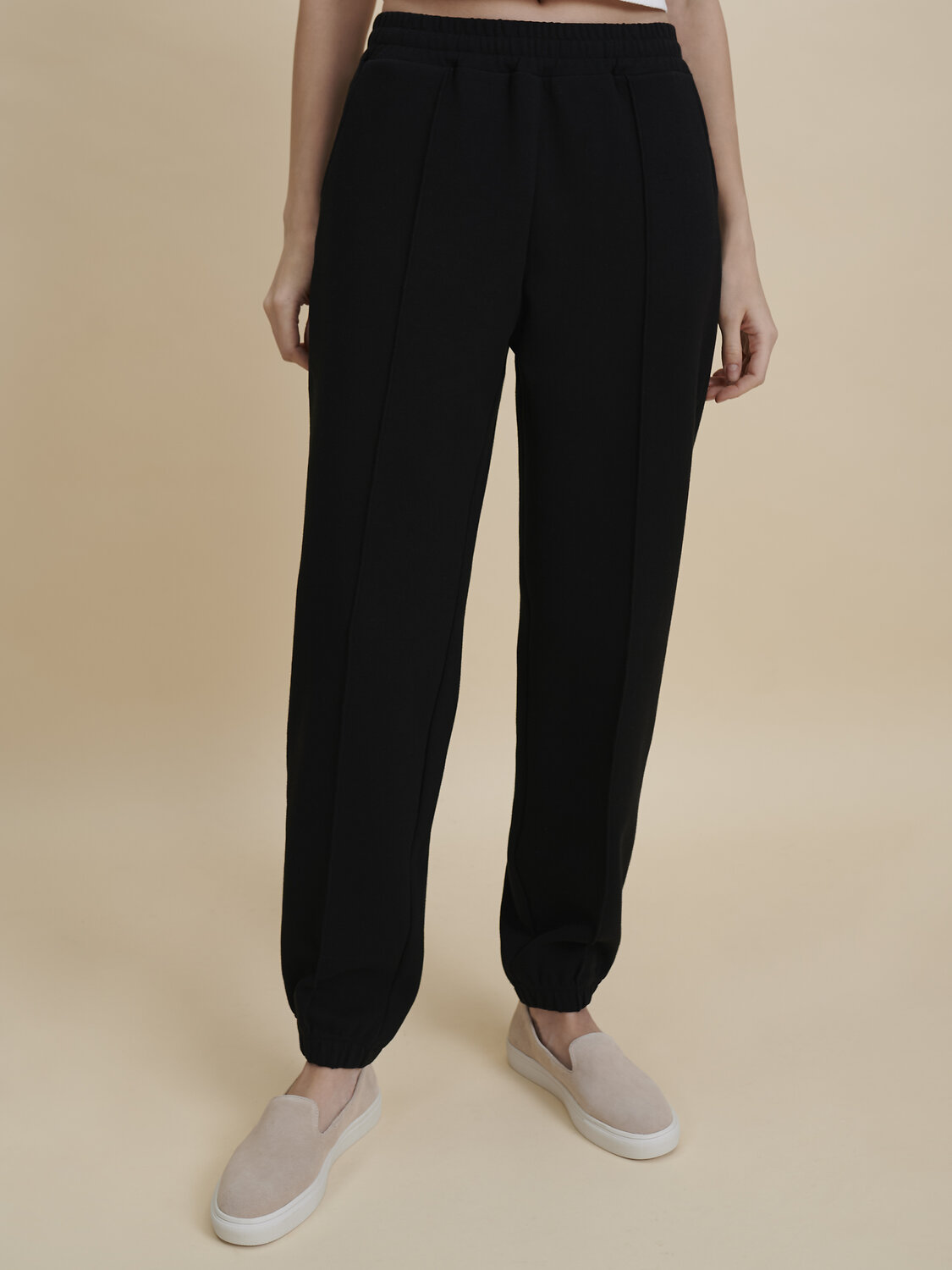Женские брюки джоггеры со стрелками по переду. Актуальная модель, сочетающая в себе спортивный стиль и элегантность. Брюки свободного кроя подарят вам ощущение комфорта и уюта. Высокая посадка визуально удлиняет ноги. По бокам брюк удобные наклонные карманы. По низу манжеты — один из модных трендов. В поясе мягкая и широкая резинка — не давит и не растягивается. Брюки однотонные, без принта. За ними просто ухаживать. В составе ткани преобладает высококачественный хлопок — штаны мягкие и воздухопроницаемые. Эластан помогает изделию сохранять первозданную форму в течение долгого времени. Женские трикотажные брюки представлены в следующих актуальных цветах: чёрном, голубом, синем, зелёном, белом. Размерная линейка: XS (42): S (44): M (46): L (48): XL (50). Брюки подходят женщинам, девушкам, девочкам-подросткам. Их можно носить на работу, учёбу, они идеальны для спорта, отдыха, а также как домашние брюки. Подходят для лета и демисезона (осень и весна). Женские брюки на резинке легко комбинировать с разнообразными джемперами, свитерами, футболками. Женские летние брюки — это отличный подарок сестре, маме или подруге на любой праздник. Выбирайте нужный размер по таблице размеров на фото. Цвет товара на экране вашего устройства может отличаться от цвета изделия вживую.