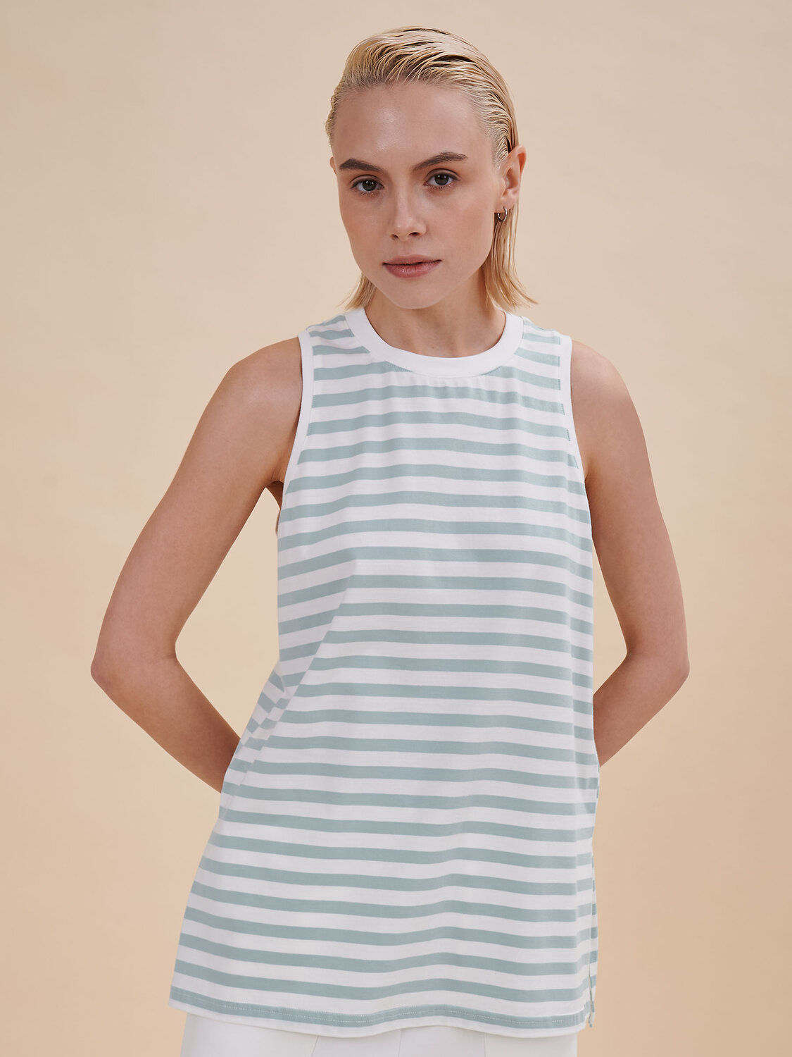 Майка в полоску женская актуального оверсайз-силуэта. Благодаря свободному покрою и разрезам по бокам топ без рукавов не стесняет ваших движений и дарит комфорт. Спинка немного длиннее переда. В составе ткани преобладает высококачественный хлопок – модель мягкая и очень комфортная. Эластан помогает изделию сохранять первоначальную форму в течение длительного времени. Майка однотонная, без принта. В линейке представлены следующие размеры: XS (42), S (44), M (46), L (48), XL (50). Такая майка подходит как женщинам, так и девушкам, девочкам-подросткам. Модель представлена в следующих актуальных цветах: синяя майка, зелёная и бежевая. Майка топ поможет вам создать расслабленный повседневный летний образ. Подойдёт также для отдыха, пляжа, дома, сна. Прекрасно сочетается с любыми брюками и шортами. Модная майка — отличный подарок сестре, маме или подруге на любой праздник. Выбирайте нужный размер по таблице размеров на фото. Цвет товара на экране вашего устройства может отличаться от цвета изделия вживую.