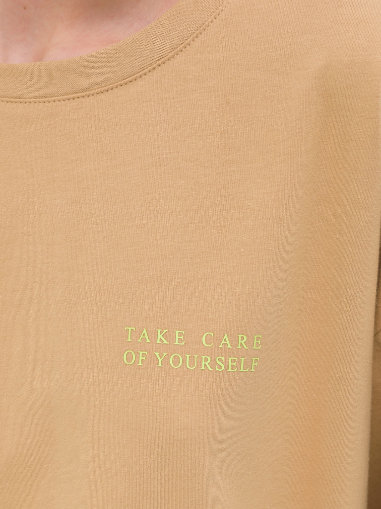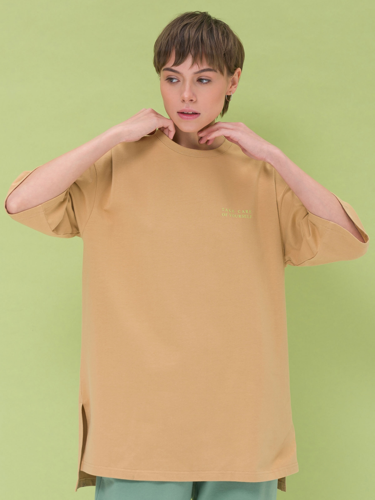 Женская футболка оверсайз с удлиненными прямыми рукавами. Натуральный хлопок и 5% эластана в составе – тело дышит, ткань меньше мнется и дольше сохраняет аккуратный внешний вид. Перепад длины по низу, разрезы по бокам для максимальной свободы движений и ощущения легкости. Крупный текстовый принт на спинке развернут по вертикали – оригинальная фишка модели. Маленький принт спереди как легкий акцент на позитивное мышление. Модель идеальна на каждый день, подходит для спортивного стиля и активного отдыха. Состав: 95%хлопок 5%эластан Возрастная группа: Standard Сезон: Весна Год: 2023 Пол: Женщины