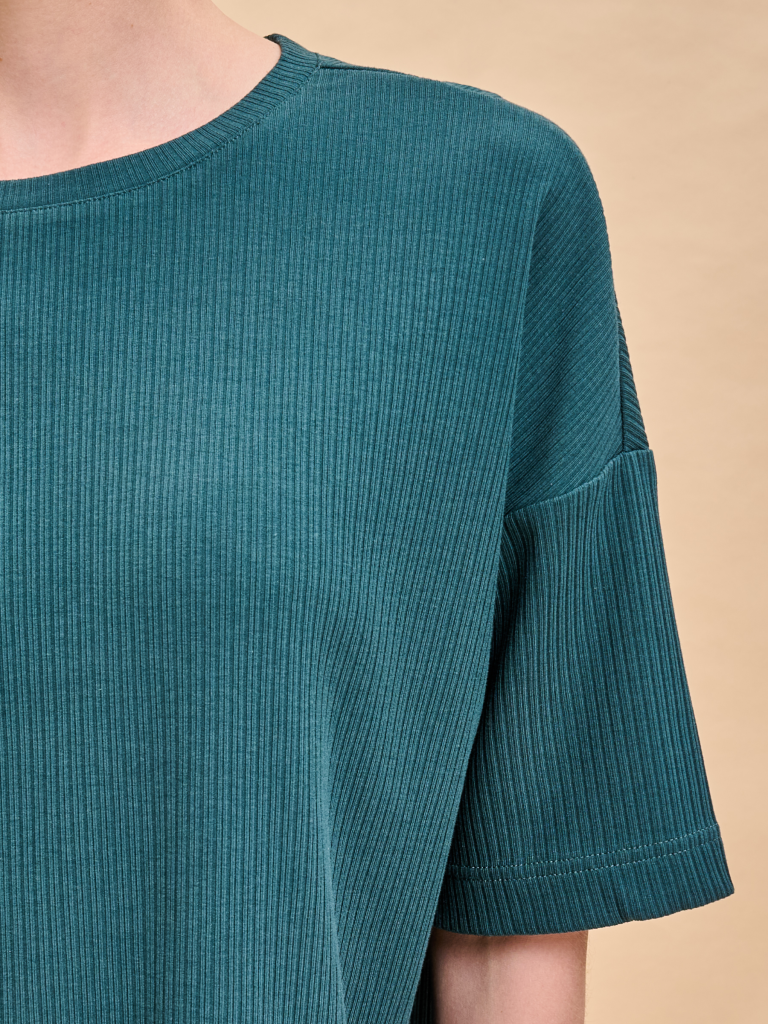 Футболка однотонная женская. Комфортная мягкая футболка силуэта оверсайз со спущенным плечом подарит вам комфорт и станет отличным дополнением повседневного гардероба. Модель выполнена из эластичной рибаны (ткань в рубчик), вырез горловины также обработан рибаной — она прекрасно держит форму, не растягивается, при этом футболку удобно надевать и снимать. Базовая футболка с рукавом длиной до локтя — актуальный тренд сезона. Изделие неприхотливо в уходе. Модель лаконичного дизайна, без принта. В составе ткани преобладает высококачественный хлопок — майка мягкая, дышащая, приятная на ощупь. Полиэстер помогает сохранить первоначальную форму и цвет в течение длительного времени. Однотонная футболка выполнена в актуальных и при этом универсальных цветах, её легко комбинировать с различными брюками, шортами, юбками. Футболка женская без принта — базовый элемент гардероба, пригодится в любой ситуации. Её можно носить в качестве домашней одежды и не только — можно создать множество различных актуальных образов. Однотонная футболка женская подходит для любого времени года, её можно носить как летом, так и в холодное время года в качестве среднего слоя одежды, а также на спорт. Помните о правильном уходе за изделием: рекомендуется стирать при температуре не выше 30 °C, без предварительного замачивания, с изнанки. Это поможет сохранить качество и цвет футболки на длительное время. Не забывайте о выборе правильного размера. Используйте таблицу размеров на фотографии, чтобы выбрать подходящий для себя вариант. Обратите внимание, что цвет товара на экране вашего устройства может отличаться от реального. Состав: 58%хлопок 37%вискоза 5%эластан Возрастная группа: Standard Сезон: Осень Год: 2024 Пол: Женщины