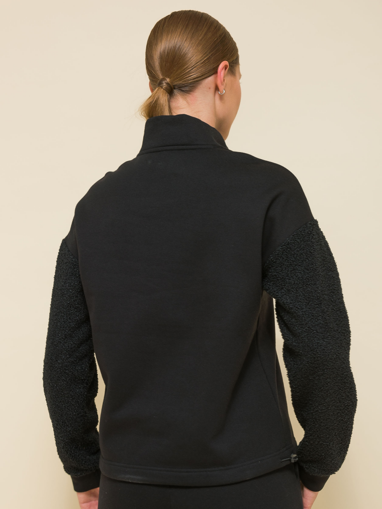 Стильный женский свитшот свободного силуэта со спущенным плечом. Толстовка без капюшона выполнена в комбинации двух материалов: гладкого футера и фактурного меха «барашек». Это актуальный модный тренд. Толстовка с воротником-стойкой. Он защитит от холода и ветра. Застёжка на короткую молнию — удобно и быстро застёгивать и расстёгивать. По низу удобная кулиска — можно регулировать объём и посадку. Свитшот однотонный, без принта. Изделие неприхотливо в уходе, его легко стирать, ткань быстро сохнет и не склонна к образованию катышков. В составе основной ткани (футкер с начесом) преобладает качественый хлопок — толстовка мягкая, отлично дышит. Рукава выполнены из мягкого и приятного на ощупь бербер-флиса (фактура «барашка»). Свитшот представлен в двух универсальных цветах: чёрном и молочном. Его легко сочетать с различными моделями брюк. Размерная линейка: XS (42): S (44): M (46): L (48). Толстовка идеальна как для женщин, так и для девушек и девочек-подростков. Подходит и высоким, и невысоким девушкам. Оверсайз-свитшот — прекрасный выбор для повседневной носки и активного отдыха. Он тёплый, лёгкий и мягкий. Для круглогодичного применения: прохладным летом, осенью, зимой, весной и демисезон. Это модный и практичный подарок для сестры, подруги или дочки на любой праздник. Состав: 60%хлопок 40%полиэстер, вставка: 100%полиэстер Возрастная группа: Standard Сезон: Осень Год: 2023 Пол: Женщины