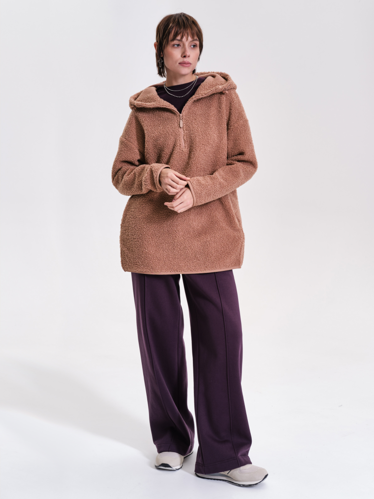 Худи женское – удобная и практичная одежда из новой коллекции бренда Pelican. Пушистая толстовка с капюшоном, кулиской и молнией по горловине до середины груди универсальна. Ее можно надеть под верхнюю одежду, она не будет стеснять движений. Легко комбинировать с другими моделями из зимней коллекции. Шнурки с карабинами - для фиксации нужной длины. Изделие с карманами. Худи с капюшоном отлично будет сочетаться как с футболкой, так и джемпером с воротником-стойкой из коллекции. Толстовка женская на молнии с капюшоном не требует особого ухода. Материал изделия (бербер-флис) после стирки не растягивается, не линяет. Быстро сохнет, что очень удобно в поездках за город на каникулы с детьми и семьей. На рукавах и по низу худи – оригинальный кант из ткани в тон основного материала. Эта кофта с замком по горловине точно станет любимой вещью вашего гардероба. Толстовка женская будет защищать от ветра и непогоды и отлично сочетается с брюками, треггинсами из теплой ткани, курткой или пальто. Новые модели выполнены в приятной палитре - сине-серого цвета (полуночный синий) и молочного. Модная флисовая кофта женская точно понравится любой девушке, девочке-подростку и женщине. Худи оверсайз не сковывает движений при занятиях зимним спортом. Такую вещь также можно подарить на Новый год или Рождество в качестве заботливого подарка, устроить фотосессию в стиле сканди. Только представьте, как уютно можно укутаться в теплый и мягкий флис зимним вечером или утеплиться на снежную прогулку с семьей. Состав: 100%полиэстер Возрастная группа: Standard Сезон: Зима Год: 2023 Пол: Женщины