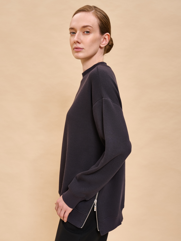 Свитшот женский без начеса. Толстовка расслабленного силуэта-кокон со спущенным плечом подарит вам комфорт и станет стильным дополнением гардероба. Спинка джемпера длиннее переда — актуальный модный тренд. Манжеты, отделка горловины и низа изделия выполнены из эластичной широкой рибаны (ткани в рубчик). Она не растягивается, отлично сохраняет форму, при этом свитшот удобно надевать и снимать. Модель неприхотлива в уходе. Оверсайз свитшот выполнен из ткани «французский рубчик» — в составе ткани преобладает высококачественный хлопок, ткань дышит и приятна на ощупь. Полиэстер помогает сохранить цвет и первозданный внешний вид надолго. «Французский рубчик» придаёт модели актуальный объём. Женский свитшот выполнен в в универсальных цветах, который легко сочетать с любыми брюками, джинсами, юбками, платьями — можно создать много красивых образов. Толстовка декорирована небольшим объёмным принтом в виде первой буквы логотипа бренда. Стильная фишка модели — в боковых швах разрезы на металлических молниях. Однотонный оверсайз-свитшот — базовый элемент повседневного женского гардероба. Свитшот без начеса можно носить круглый год. Помните о правильном уходе за изделием: рекомендуется стирать при температуре не выше 30 °C, без предварительного замачивания, с изнанки. Это поможет сохранить качество и цвет свитшота на длительное время. Не забывайте о выборе правильного размера. Используйте таблицу размеров на фотографии, чтобы выбрать подходящий для себя вариант. Обратите внимание, что цвет товара на экране вашего устройства может отличаться от реального. Состав: 65%хлопок 35%полиэстер, вставка: 95%хлопок 5%эластан Возрастная группа: Standard Сезон: Осень Год: 2024 Пол: Женщины