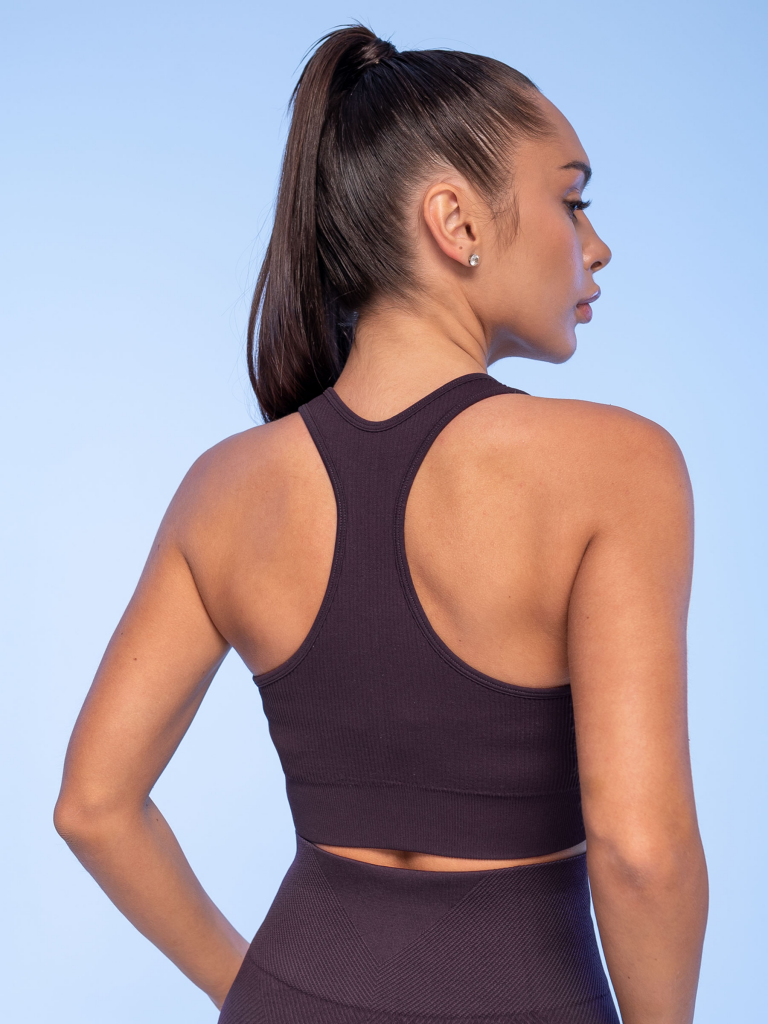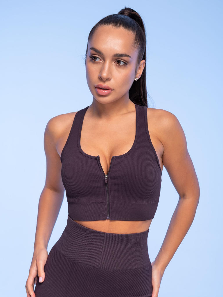 Спортивный топ бра женский из эластичной и плотной микрофибры. Короткая бесшовная майка с открытой спиной типа «борцовка». Женский спортивный кроп топ для фитнеса и йоги сделает тренировки легкими, движения свободными, а занятия спортом в радость. Изящные вырез горловины и проймы подчеркнут красоту открытой шеи и плеч. Спереди актуальная застёжка на молнию. Удобный укороченный топ для женщин подходит для тренировок и для занятий в тренажерном зале, пилатеса, для бега, для йоги и фитнеса, занятий танцами и прогулок. Комфортный топик красиво садится по фигуре, подчеркивая природные линии тела. Майка однотонная, без принта, неприхотлива в уходе. В составе ткани полиамид и эластан – топ легко стирается и быстро сохнет, надолго сохраняет первоначальные форму и цвет, ткань не просвечивает. Стильный и современный топ для девушек прочно вошел в трендовые образы, стирая грань между повседневной и спортивной одеждой. Модный топик – это не просто одежда для фитнеса, это базовая вещь в женском гардеробе. Подходит женщинам, девушкам, девочкам-подросткам. В линейке представлены следующие размеры: XS-S (42-44), M-L (46-48). Такой топ можно надеть под пиджак, под рубашку, в качестве первого слоя под одежду. Модель представлена в актуальных фиолетовом и бирюзовом цветах, а также в классическом чёрном. Топ бюстье сочетается с джинсами, спортивными леггинсами, велосипедками. Такая укороченная майка подойдет как белье под объемный свитер с открытым плечом. Отличный подарок маме, сестре или подруге на любой праздник. Выбирайте нужный размер по таблице размеров на фото. Цвет товара на экране вашего устройства может отличаться от цвета изделия вживую._x000D_