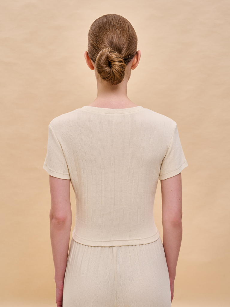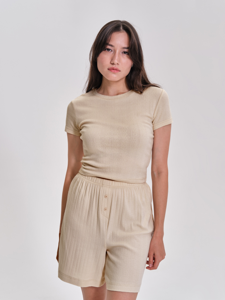 Футболка женская укороченная приталенная с коротким рукавом изготовлена из мягкого 100% хлопка «пуантель» с мельчайшим геометрическим узором, напоминающим кружево. Джемпер укороченный женский облегающего силуэта с округлым вырезом горловины. Футболка однотонная женская лаконичного дизайна, без принта. Футболки короткие идеально подходят для расслабленных домашних образов. Модель представлена в универсальных цветах, её легко комбинировать с различными брюками, шортами и юбками. Футболка ажурная женская хорошо сочетается с брюками в таком же стиле, в ассортименте представлены брюки в тон. Помните о правильном уходе за изделием: рекомендуется стирать при температуре не выше 30 °C, без предварительного замачивания, с изнанки. Это поможет сохранить качество и цвет футболки на длительное время. Не забывайте о выборе правильного размера. Используйте таблицу размеров на фотографии, чтобы выбрать подходящий для себя вариант. Обратите внимание, что цвет товара на экране вашего устройства может отличаться от реального. Состав: 95%хлопок 5%эластан Возрастная группа: Standard Сезон: Осень Год: 2024 Пол: Женщины