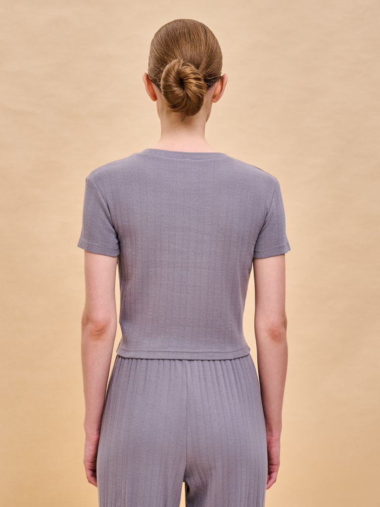 Футболка женская укороченная приталенная с коротким рукавом изготовлена из мягкого 100% хлопка «пуантель» с мельчайшим геометрическим узором, напоминающим кружево. Джемпер укороченный женский облегающего силуэта с округлым вырезом горловины. Футболка однотонная женская лаконичного дизайна, без принта. Футболки короткие идеально подходят для расслабленных домашних образов. Модель представлена в универсальных цветах, её легко комбинировать с различными брюками, шортами и юбками. Футболка ажурная женская хорошо сочетается с брюками в таком же стиле, в ассортименте представлены брюки в тон. Помните о правильном уходе за изделием: рекомендуется стирать при температуре не выше 30 °C, без предварительного замачивания, с изнанки. Это поможет сохранить качество и цвет футболки на длительное время. Не забывайте о выборе правильного размера. Используйте таблицу размеров на фотографии, чтобы выбрать подходящий для себя вариант. Обратите внимание, что цвет товара на экране вашего устройства может отличаться от реального. Состав: 95%хлопок 5%эластан Возрастная группа: Standard Сезон: Осень Год: 2024 Пол: Женщины
