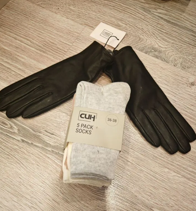 Перчатки кожа 100% + носки (5 пар).