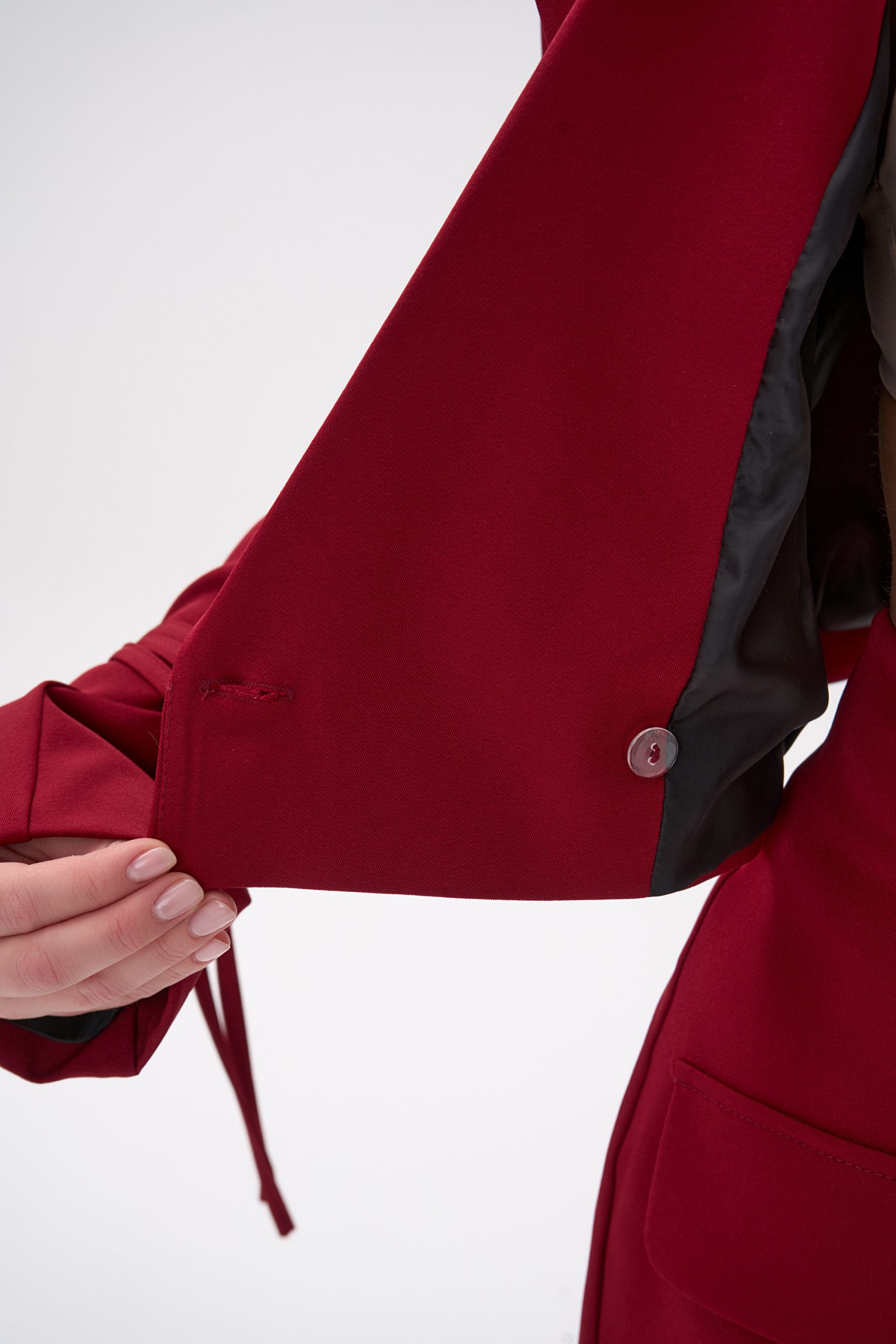 Пиджак держит форму, но не выглядит тяжёлым — ткань мягко повторяет движения, благодаря чему изделие комфортно даже при длительной носке.
