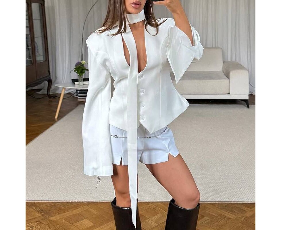 Красивый приталенный пиджак с интересным элем..показатьентом в виде поясочка на шею! Образ будет на все 100%ентом в виде поясочка на шею! Образ будет на все 100% БЕЛЫЙ