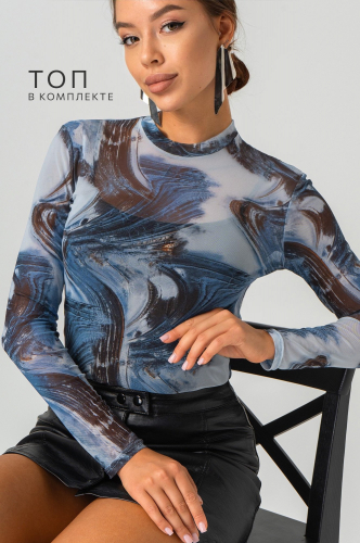 В комплект входит черный топ, который гармонично дополняет образ и создаёт стильный многослойный эффект.
