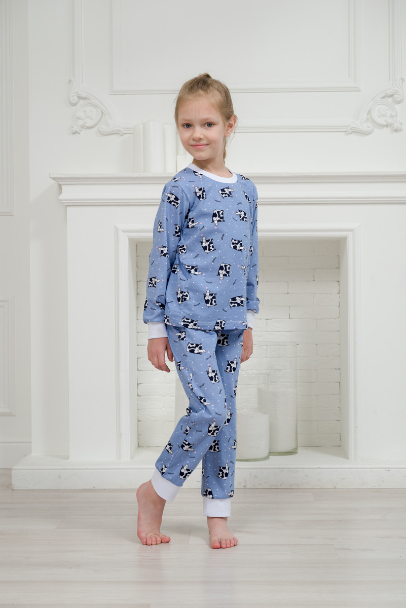 Пижама детская из джемпера и брюк из кулирки Коровы голубой