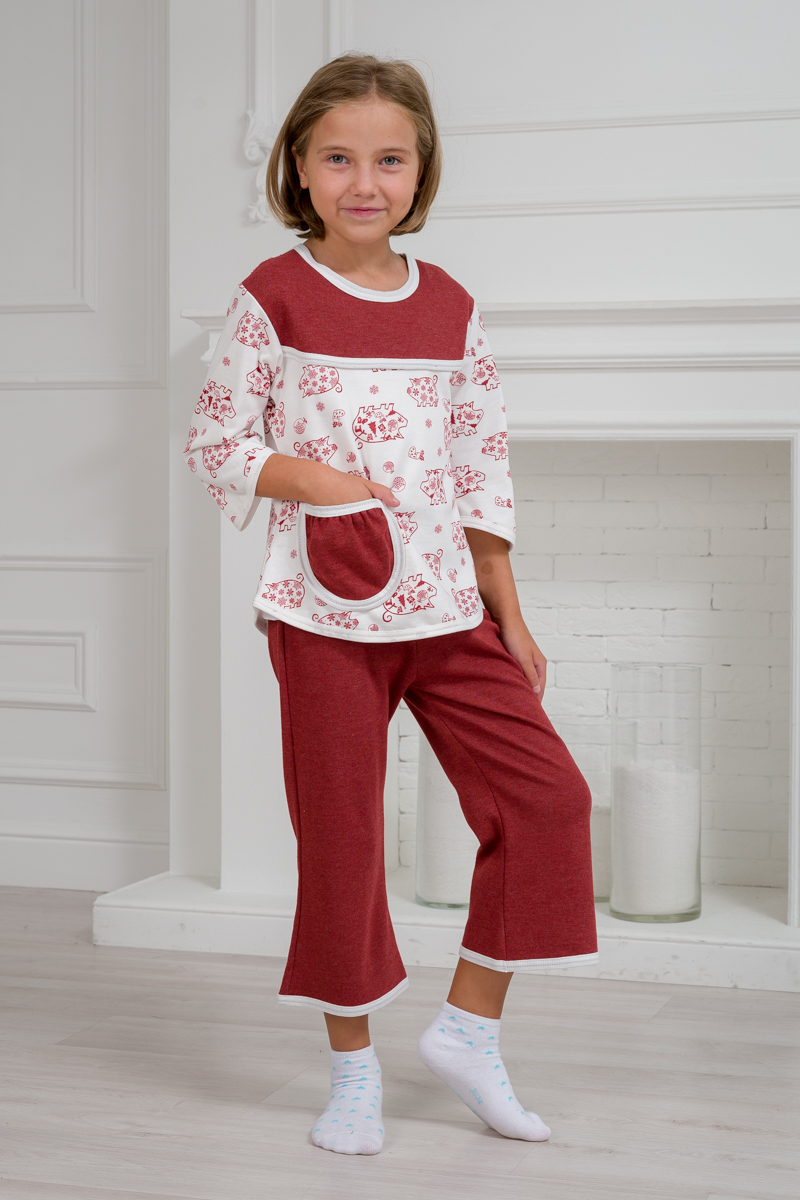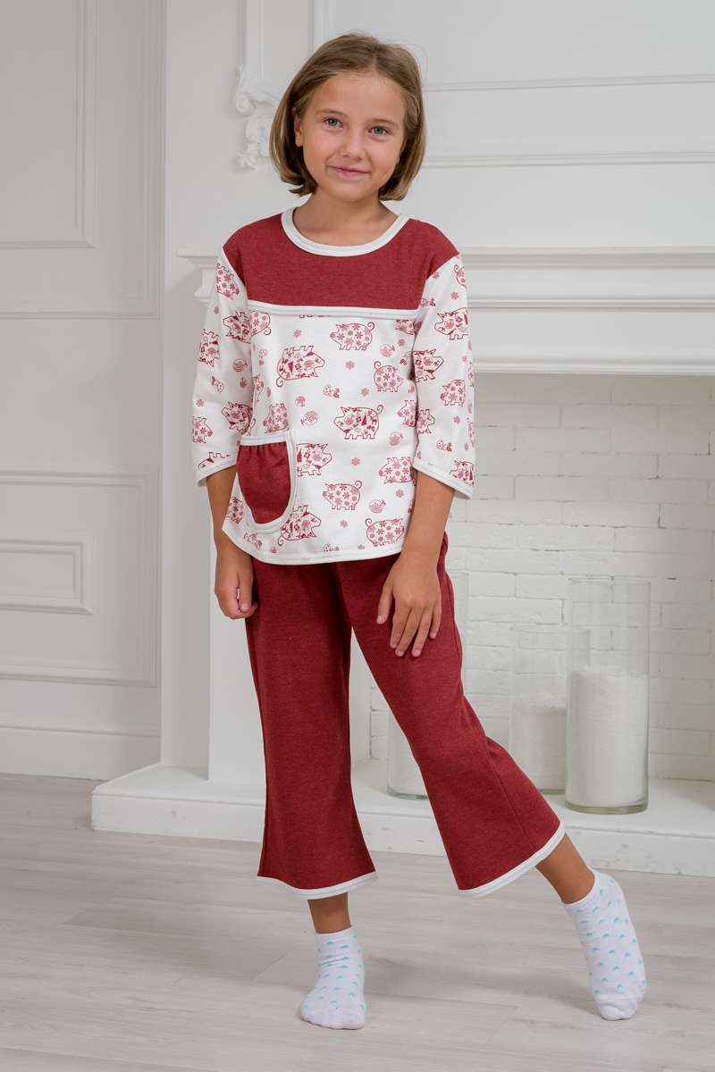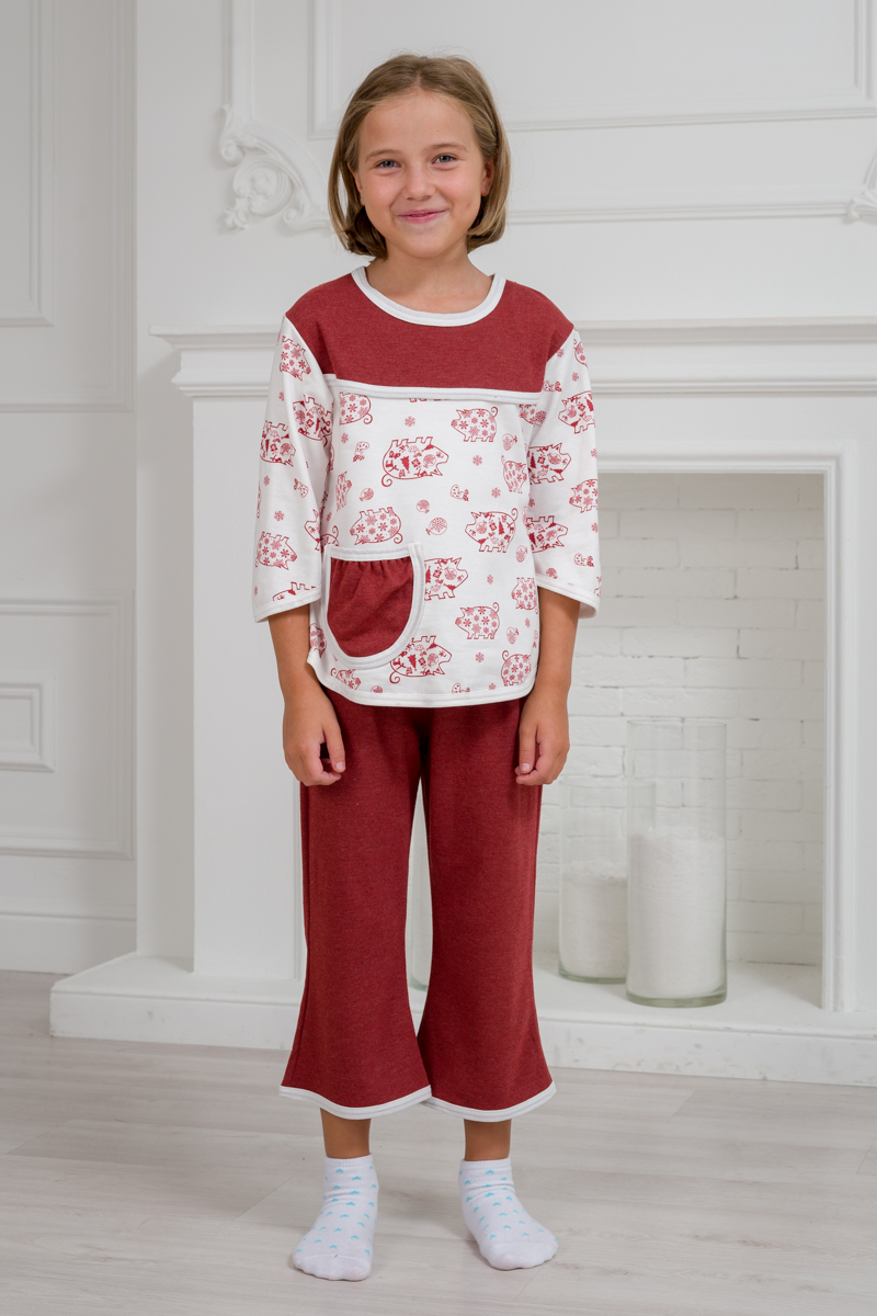 Пижама детская из футера Катя бордо