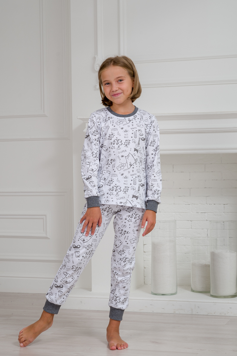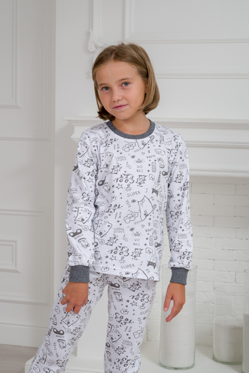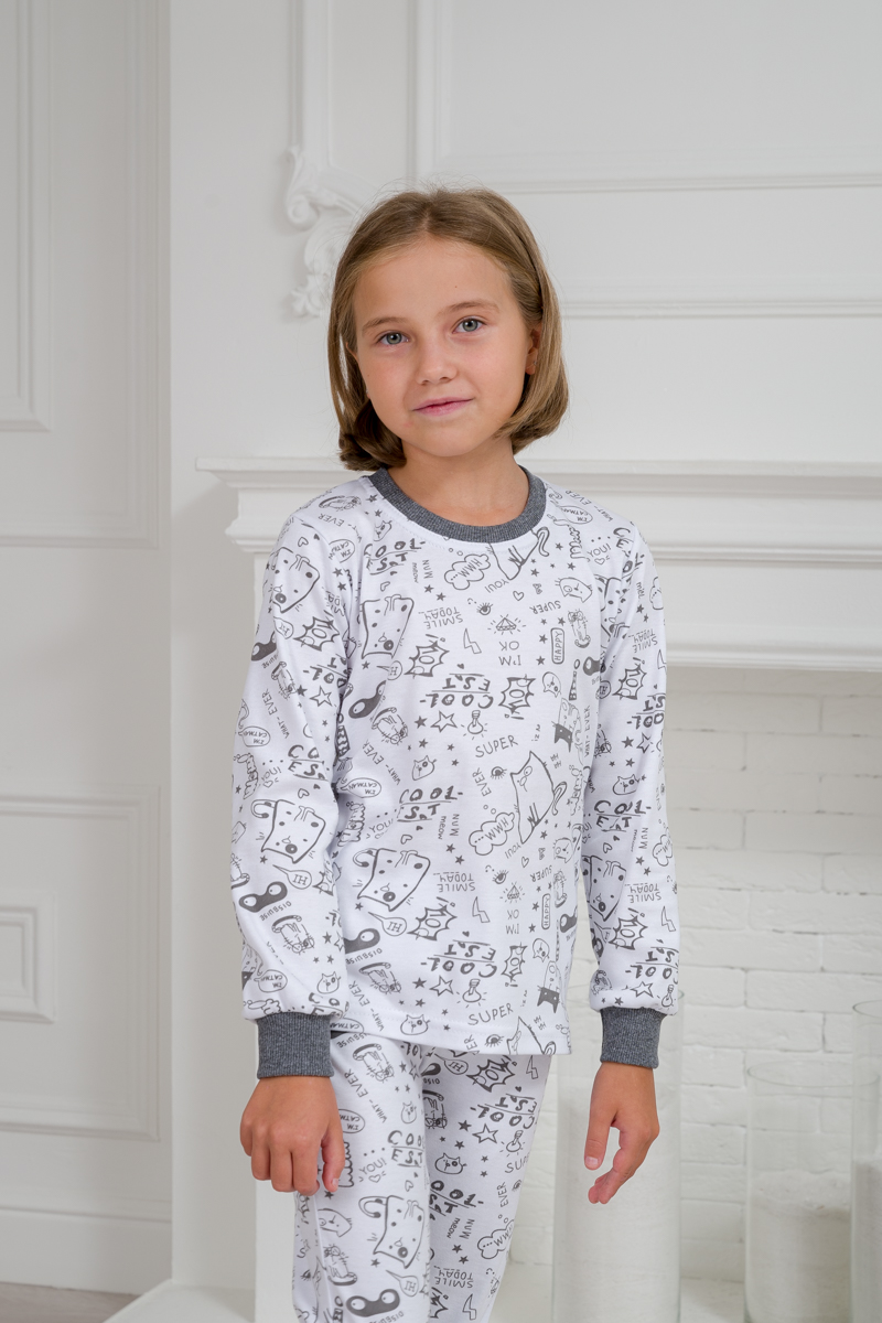 Пижама детская из интерлока Потешка котик темно серый