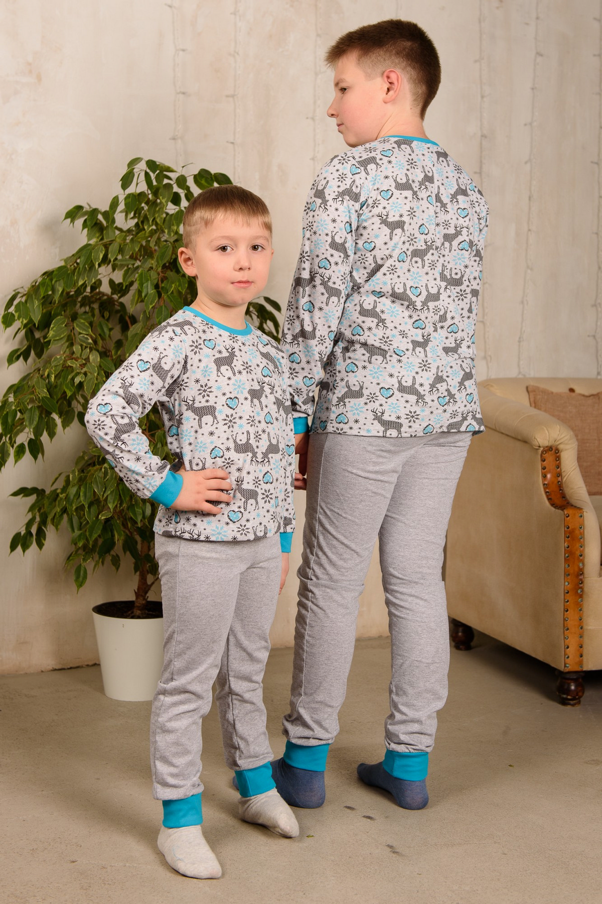Пижама подростковая из джемпера и брюк из кулирки Олененок голубой
