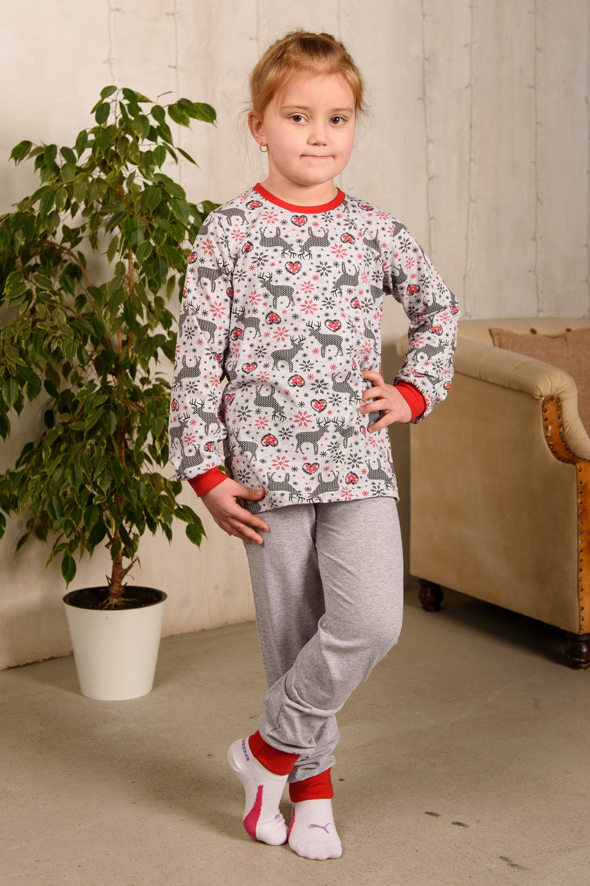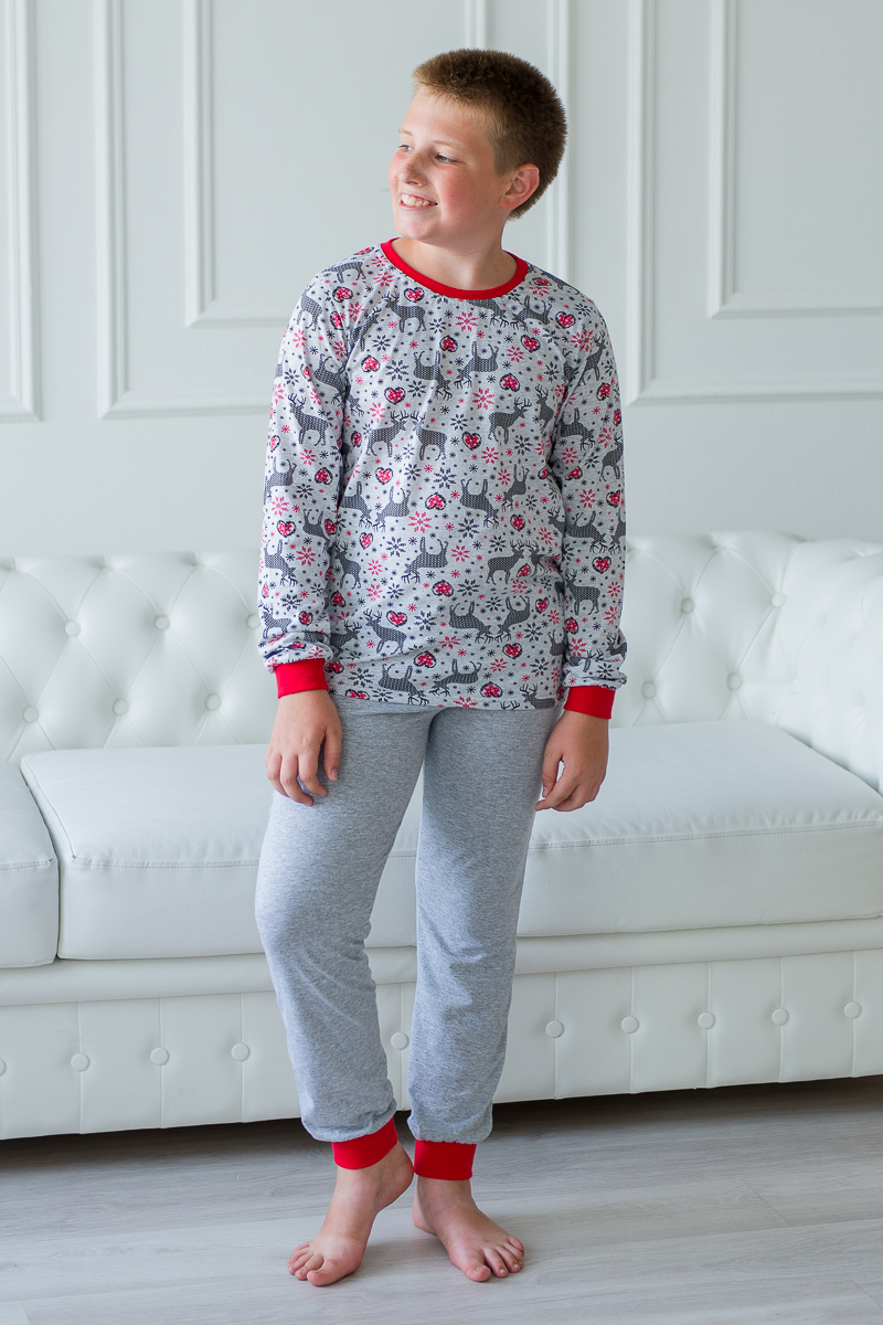Пижама подростковая из джемпера и брюк из кулирки Олененок красный
